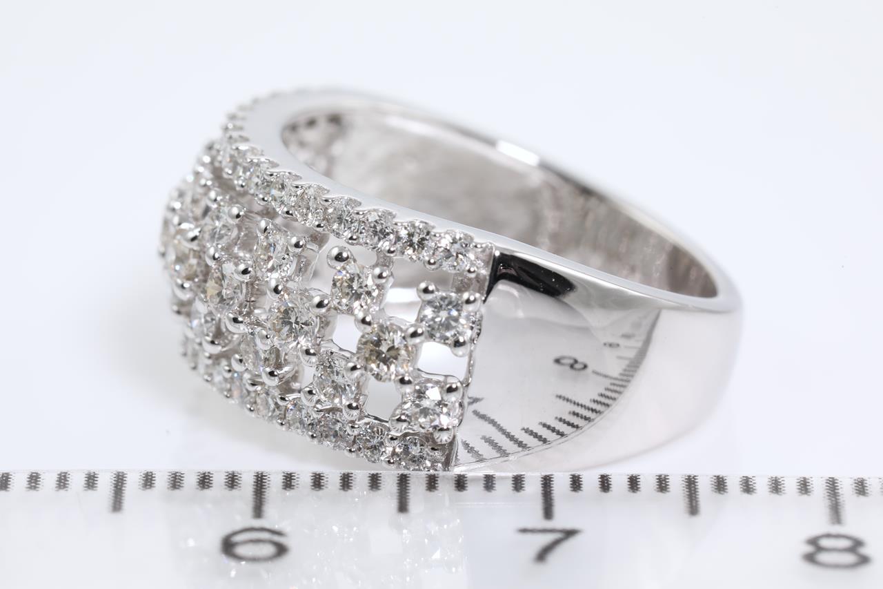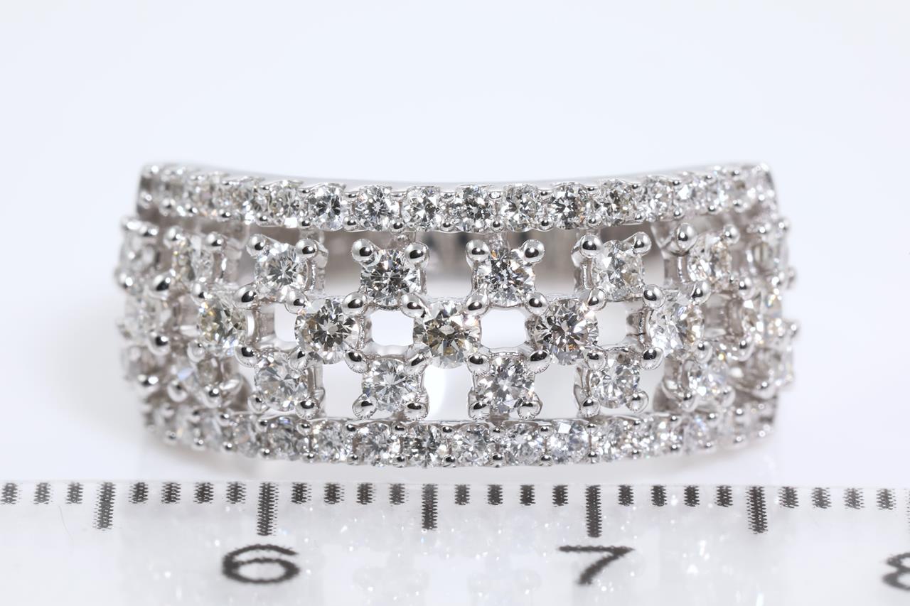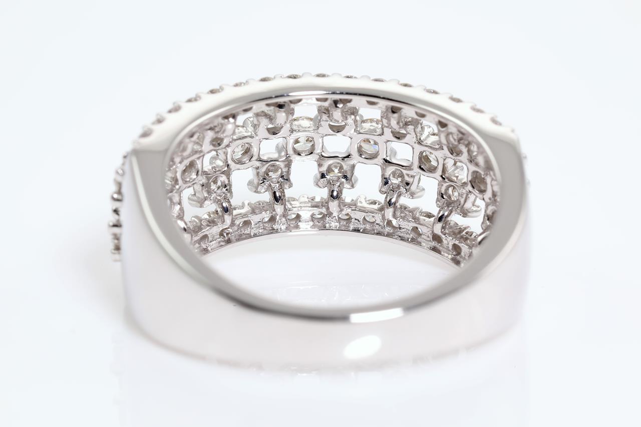 Diamond dress ring with round Diamonds totalling 1.00cts (Estimated grading: H SI). 14ct white gold. Ring size L - cannot be resized up, down with ring clip. Weight: 4.9g (New)