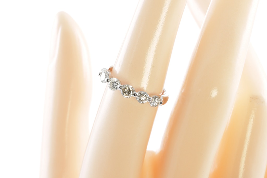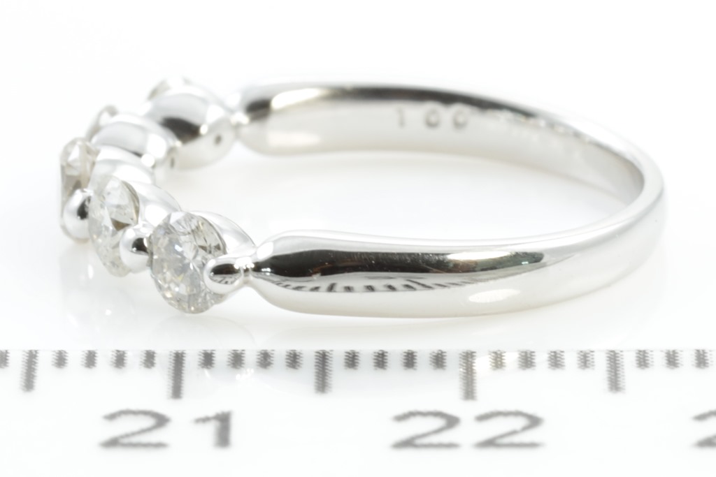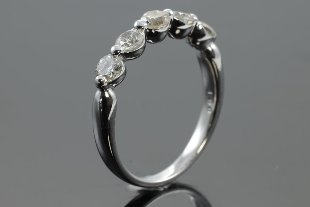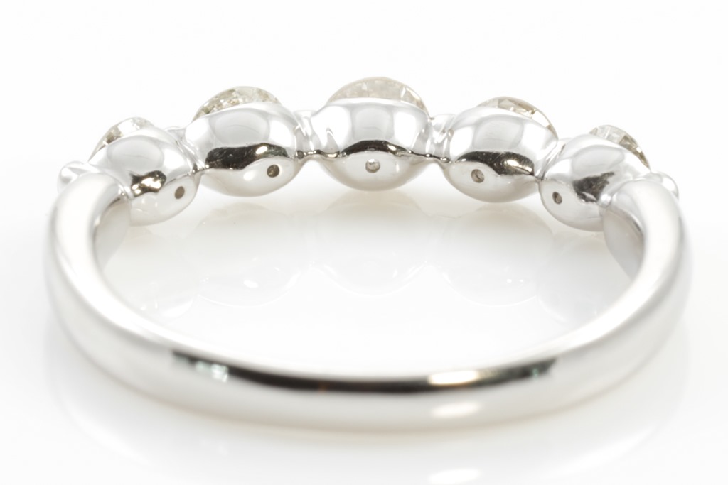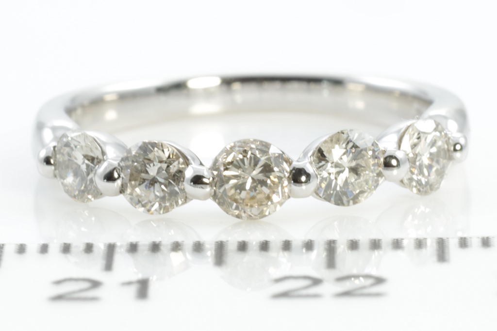 Diamond ring with 5 round Diamonds totalling 1.00cts (Estimated grading: K-L P1). Platinum. Ring size: M. Weight: 4.2g. (Pre-owned)