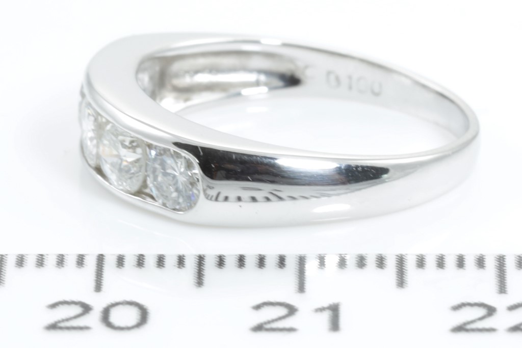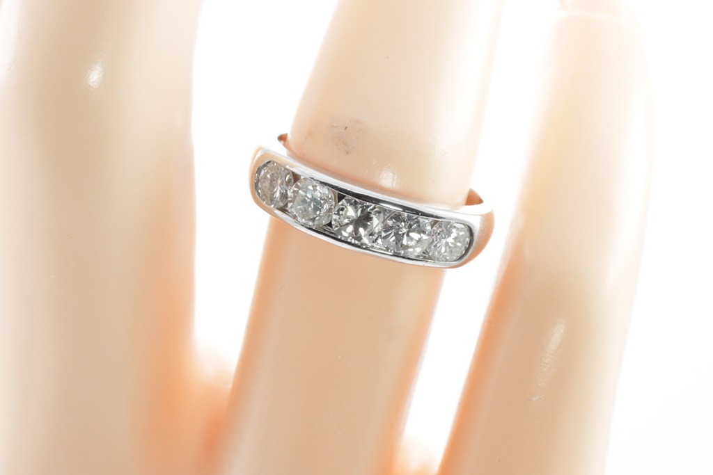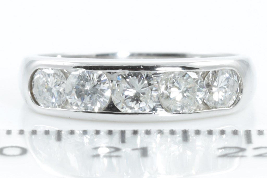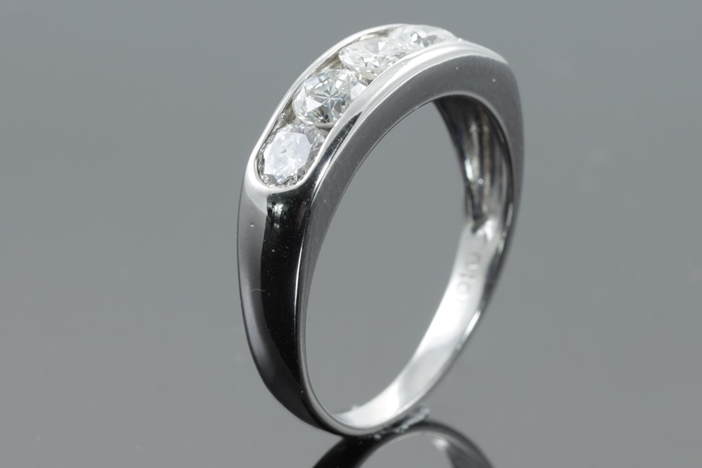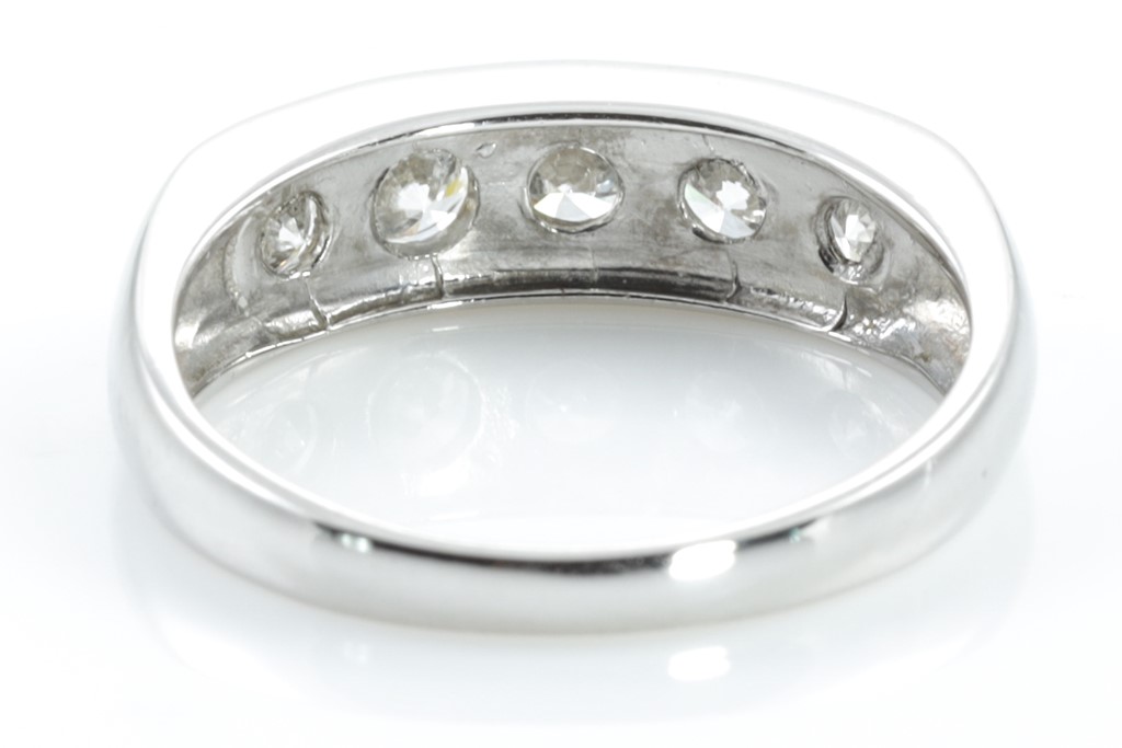 Diamond ring with 5 round Diamonds totalling 1.00cts (Estimated grading: H-J SI-P1). Platinum. Ring size: L. Weight: 4.9g. (Pre-owned).