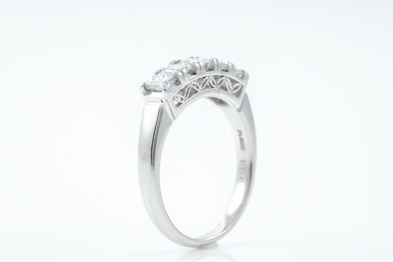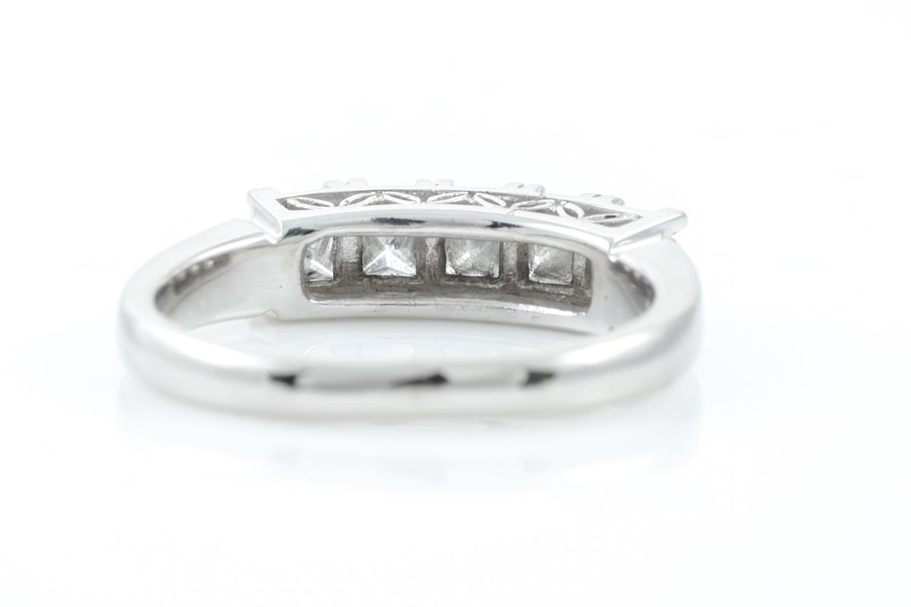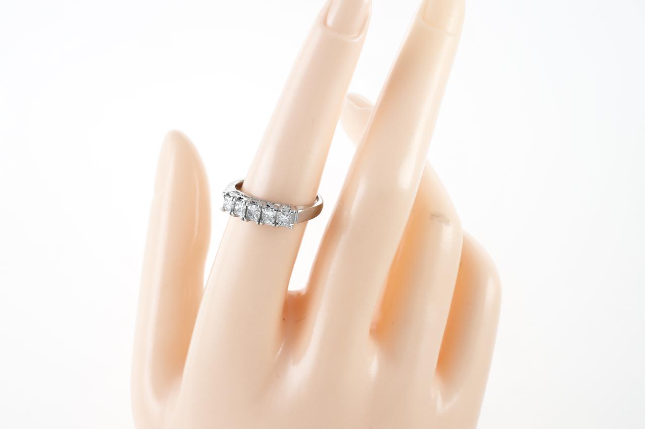 Diamond Ring with 5 princess cut Diamonds totalling 1.00cts (Estimated grading: G SI). Platinum. Ring size: O. Weight: 6.2g (Pre-owned)