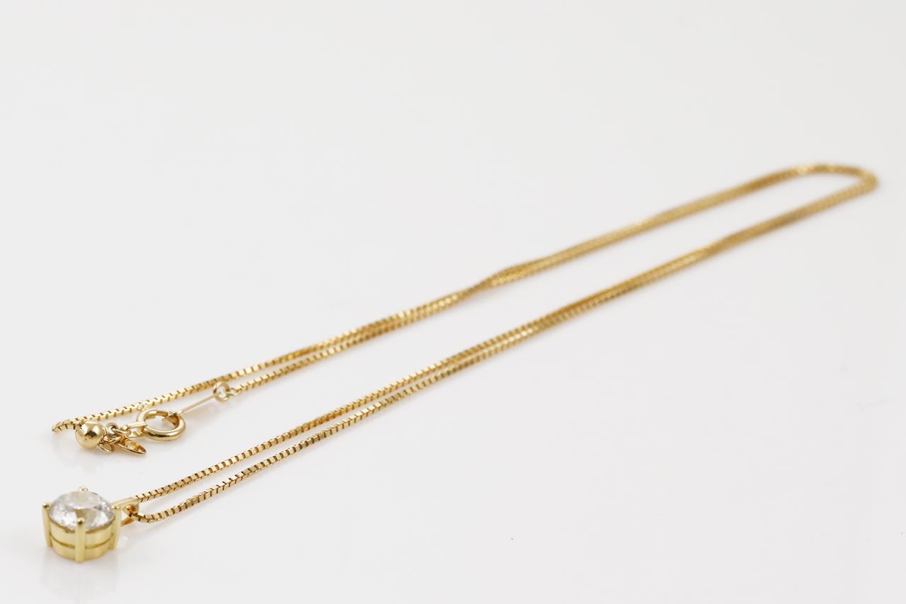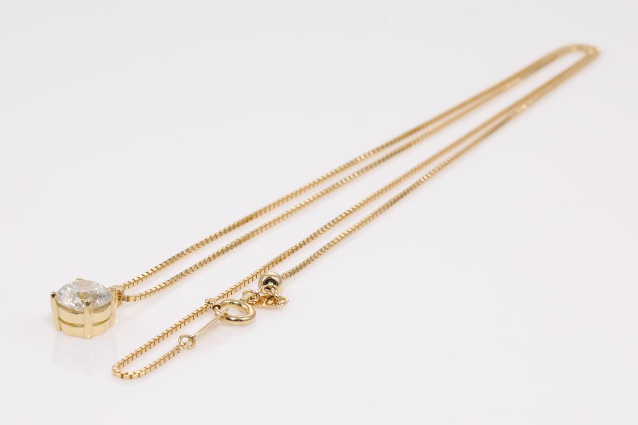 Diamond solitaire pendant with round brilliant cut Diamond totalling 1.00cts (With GSL memo graded as G P2 #GSL291121-6). 18ct yellow gold with 18ct yellow gold 45cm adjustable chain. Weight: 3.2g (New)