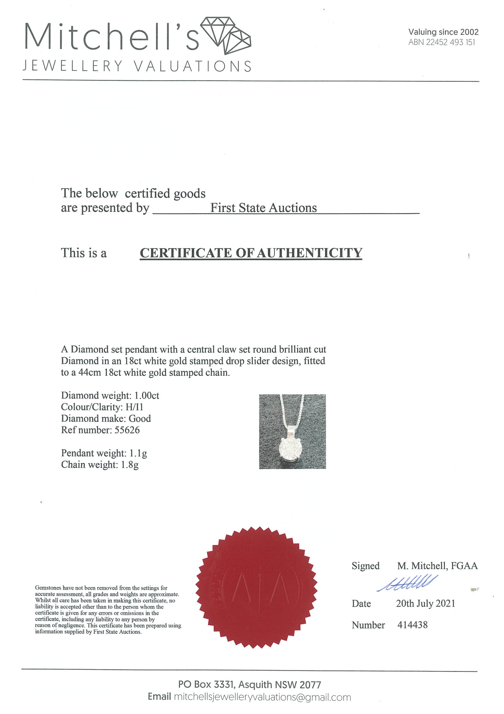 1.00ct Diamond Solitaire Pendant | First State Auctions