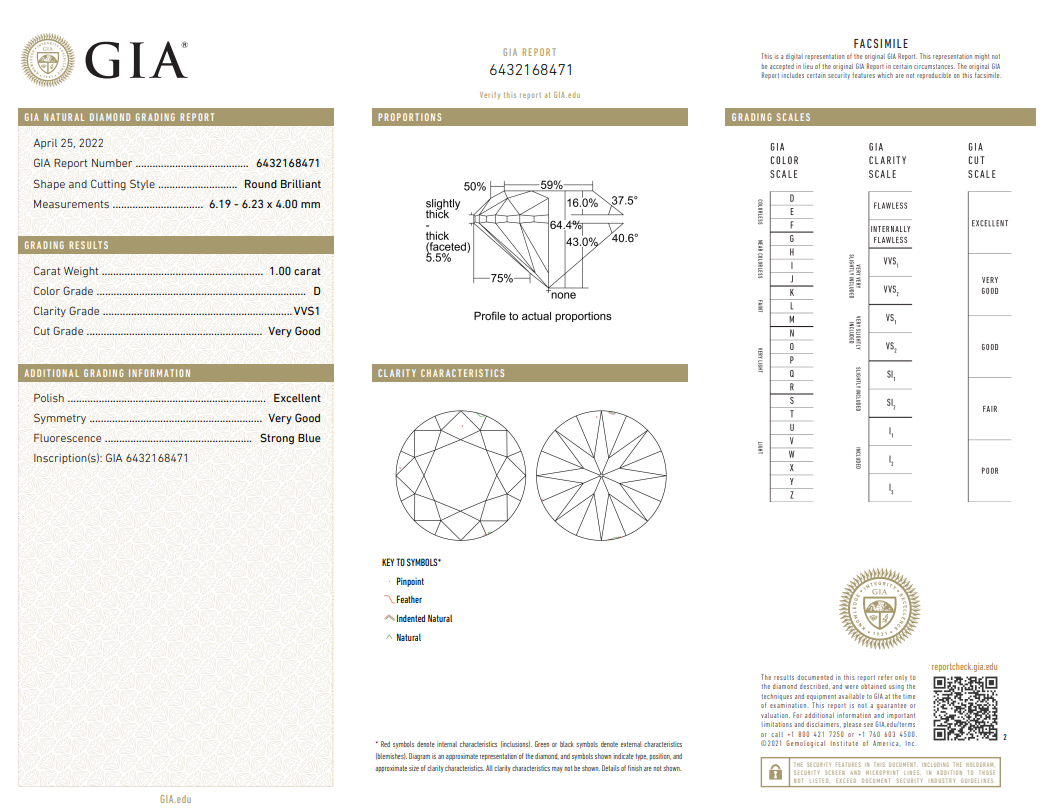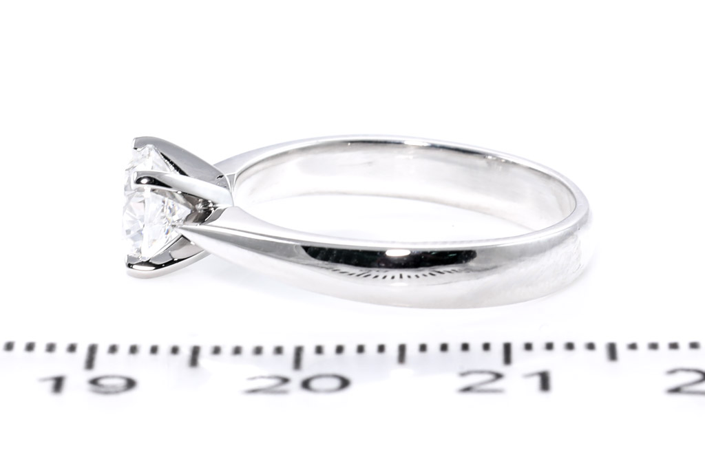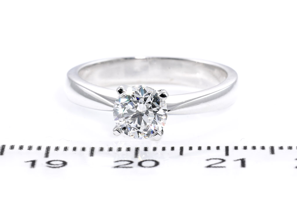 Diamond solitaire ring with a round brilliant cut Diamond of 1.00ct (With GIA report graded as D VVS1 #6432168471). 18ct white gold. Ring size M1/2. Weight: 4.6g. (New)