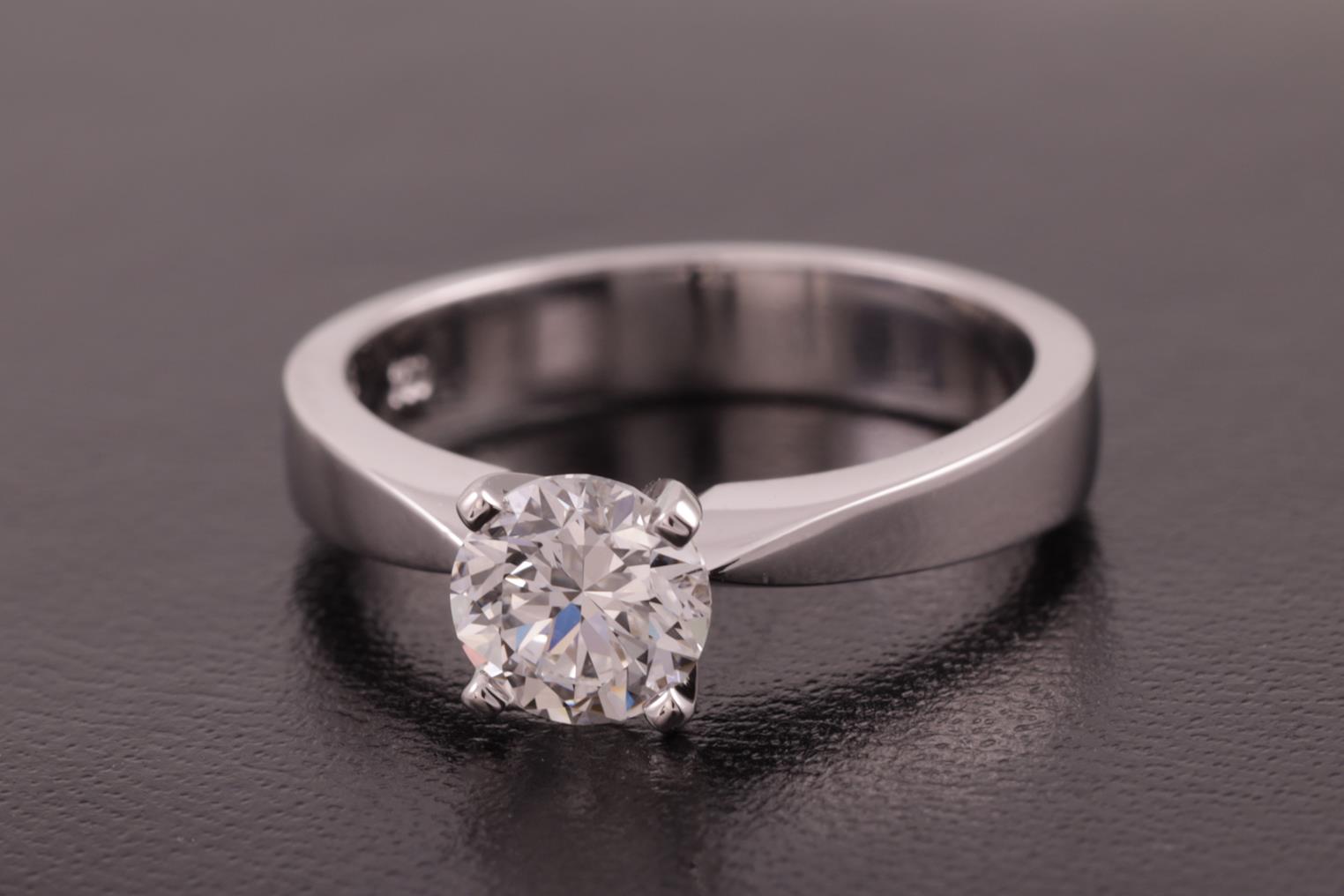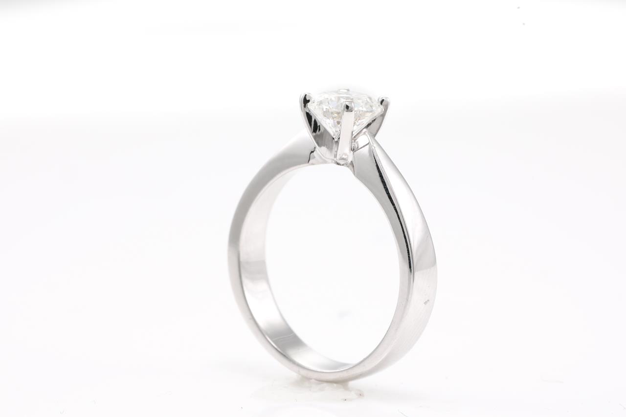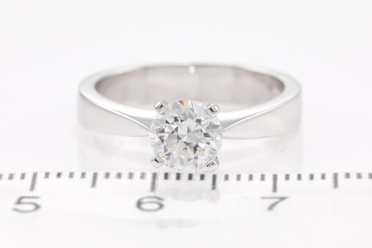 Diamond Solitaire Ring with Round Brilliant cut Diamond of 1.00ct (with GIA report graded as E VVS2#6375262638). 18ct white gold. Ring size M. Weight 5.4g (New)