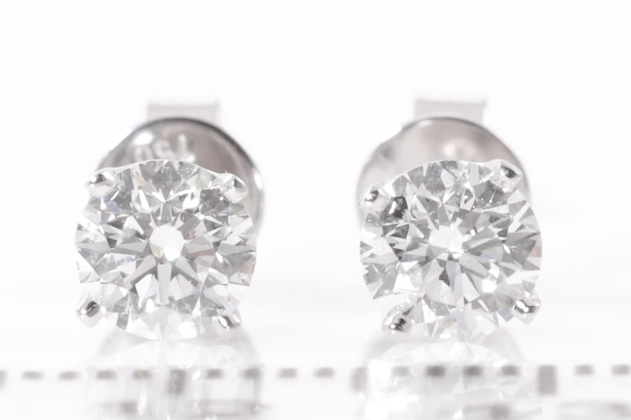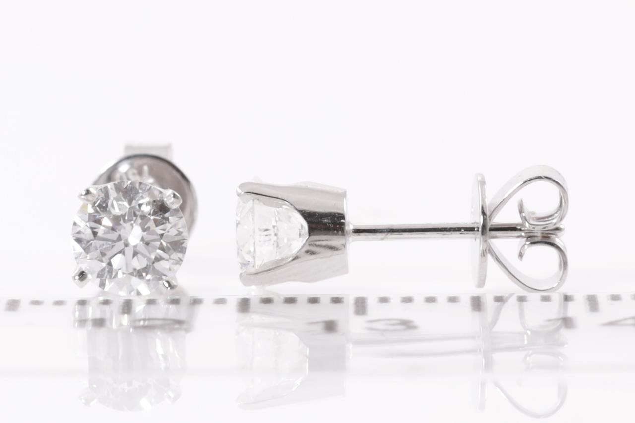 Diamond Stud Earrings with 2 round brilliant cut Diamonds totalling 1.00cts (both with GIA summary reports graded as D SI1 #2407510097, 2406008389). 18ct white gold. Weight: 1.7g (New)