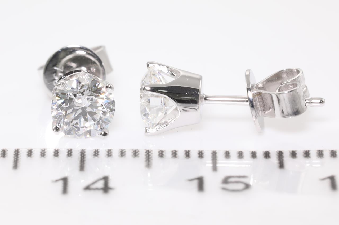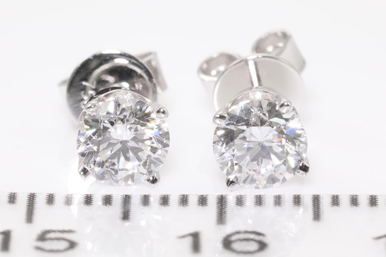 Diamond stud earrings with 2 round brilliant cut Diamonds totalling 1.00cts (both with GIA summary reports graded as D VS1 #1398577286, 2211650720). 18ct white gold. Weight: 1.5g. (New)