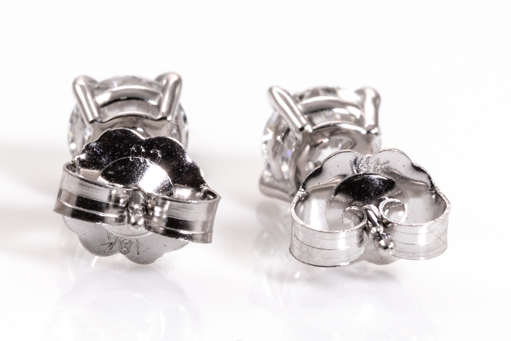 Diamond stud earrings with 2 round brilliant cut Diamonds totalling 1.00cts (both with GIA summary reports graded as D VS2 #1413089513, 3395154397) 18ct white gold. Weight: 1.0g (New)