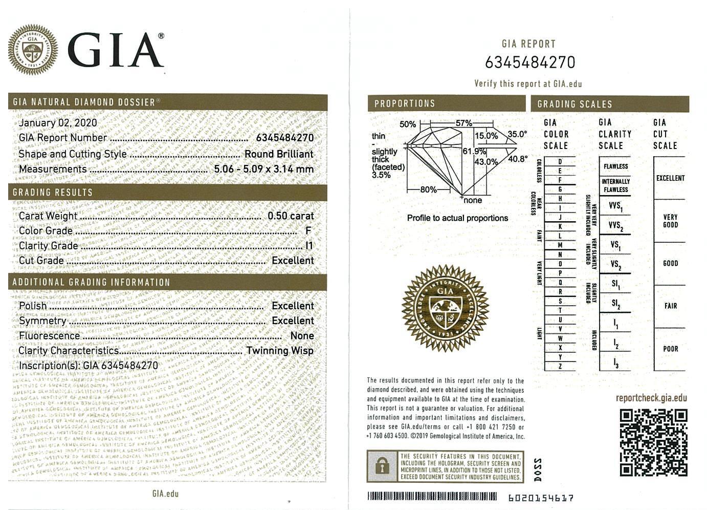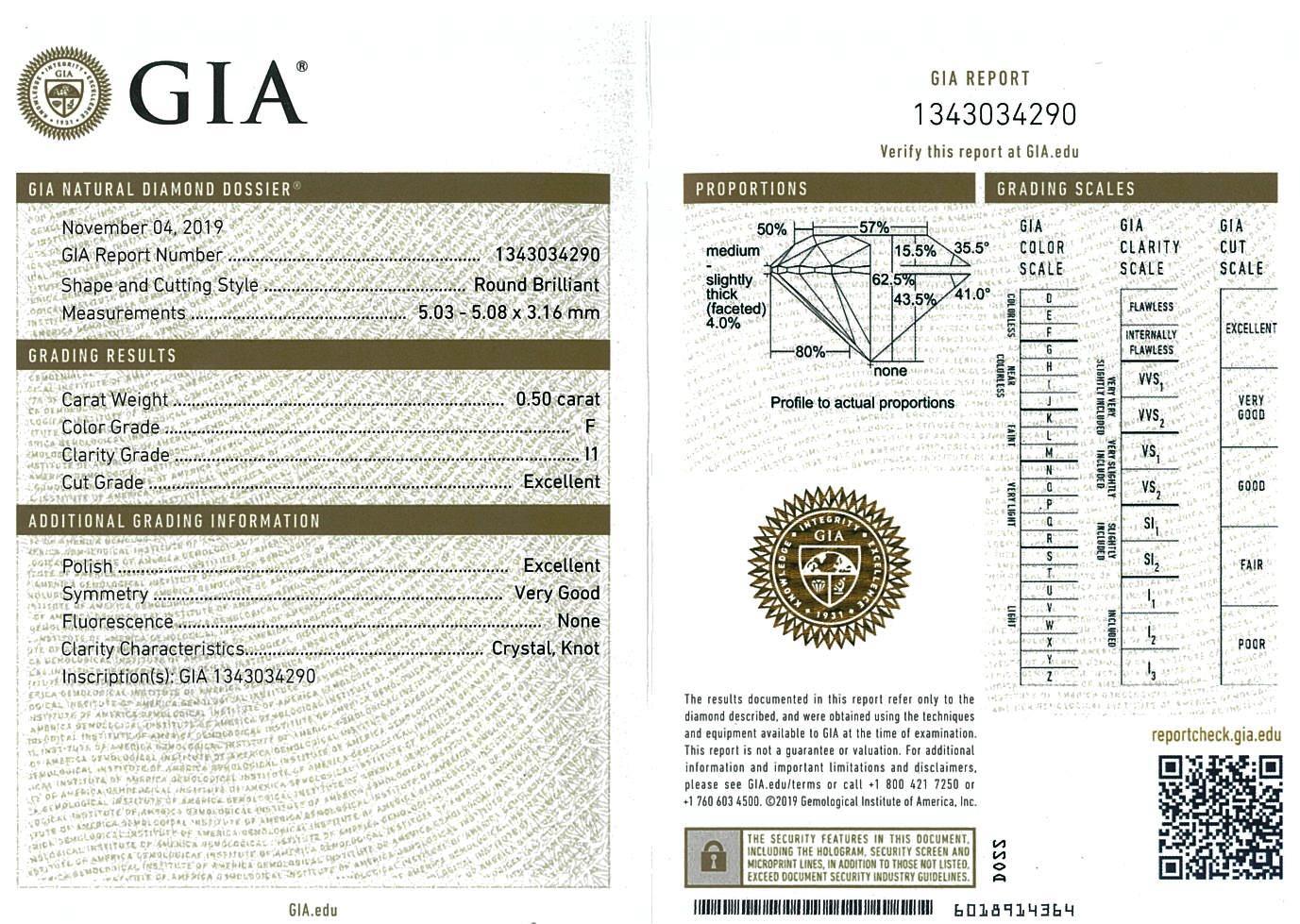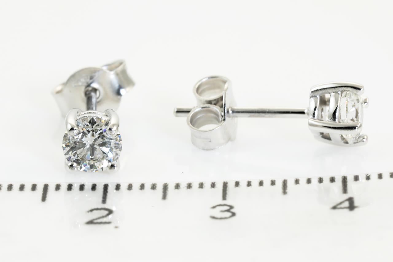 Diamond stud earrings with 2 round brilliant cut Diamonds totalling 1.00cts (with GIA reports graded as F P1 #6345484270, 1343034290). 18ct white gold. Weight: 2.2g. (New).
