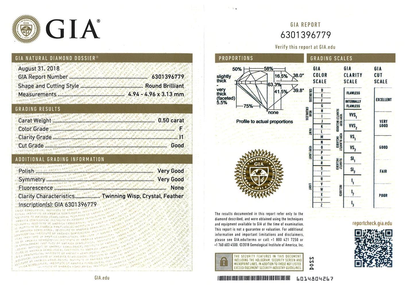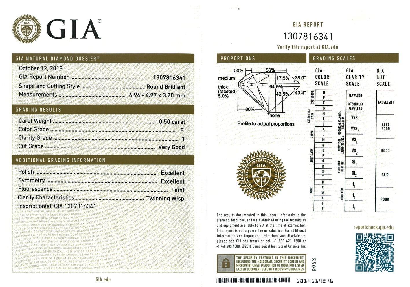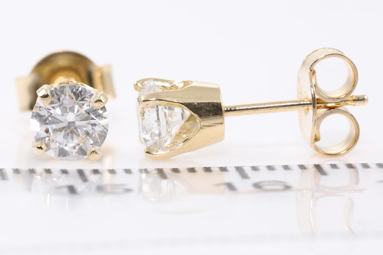 Diamond stud earring with 2 Round Brilliant Cut Diamonds totalling 1.00cts (with GIA report both graded as F P1 #6301396779, 1307816341). 18ct yellow gold. Weight: 1.9 (New)