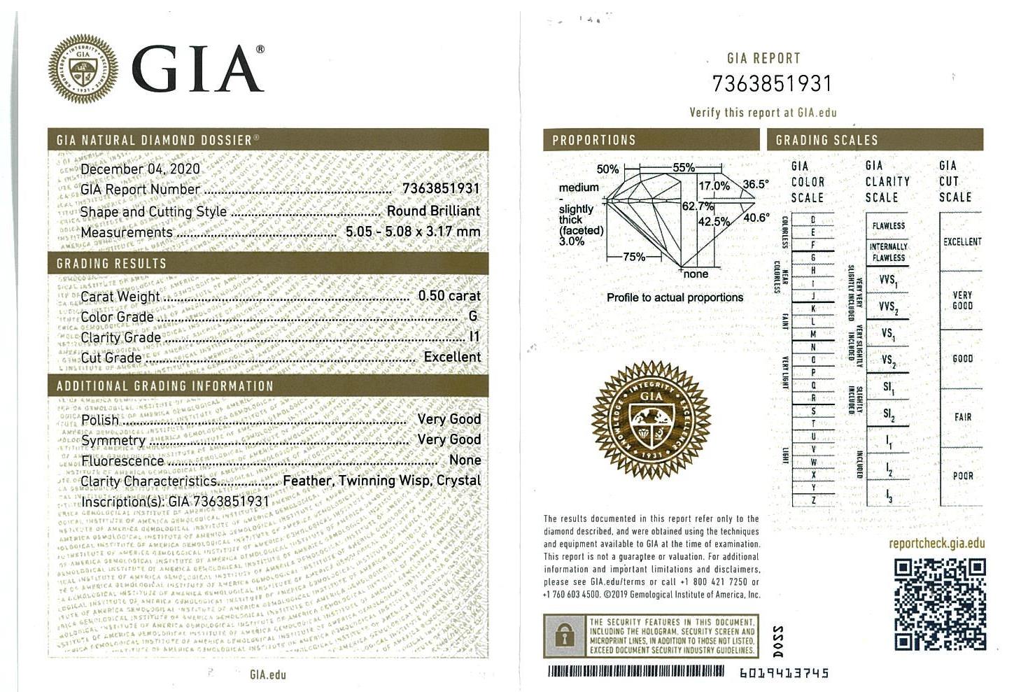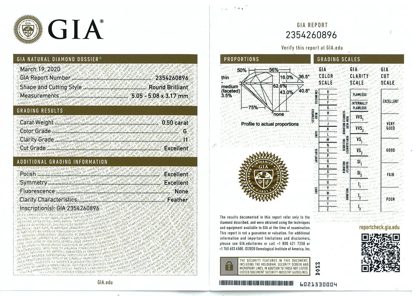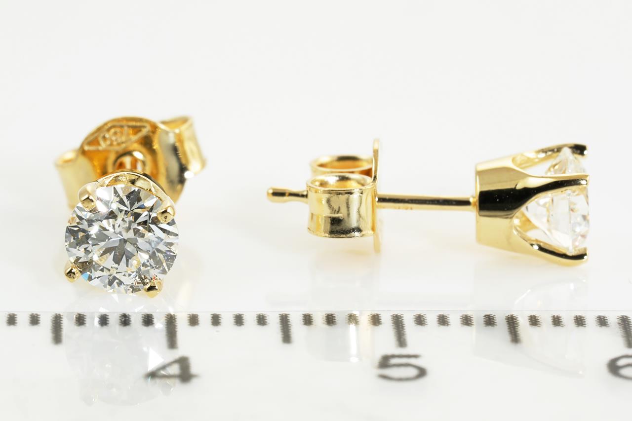 Diamond stud earrings with 2 round brilliant cut Diamonds totalling 1.00cts (with GIA reports graded as G P1 #2354260896, 7363851931). 18ct yellow gold. Weight: 1.7g. (New).