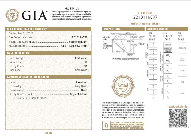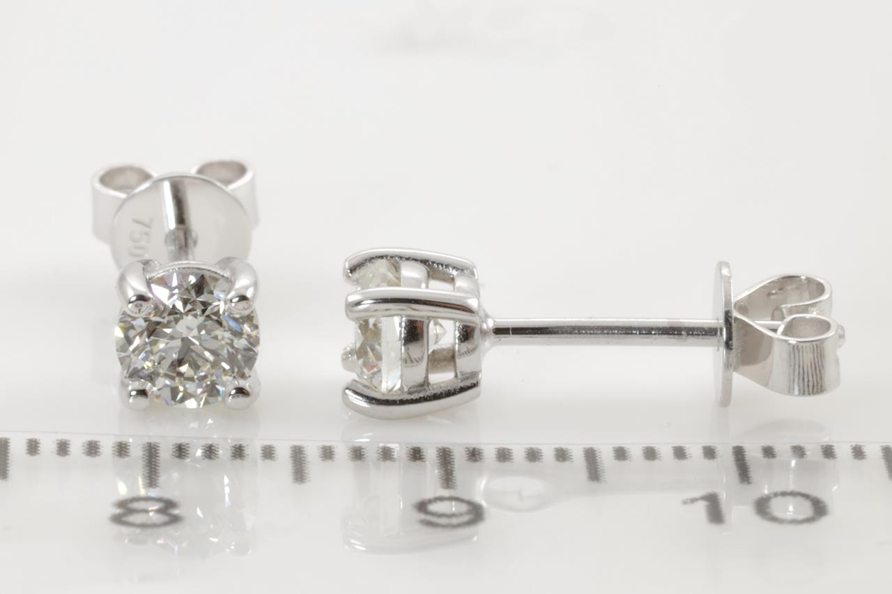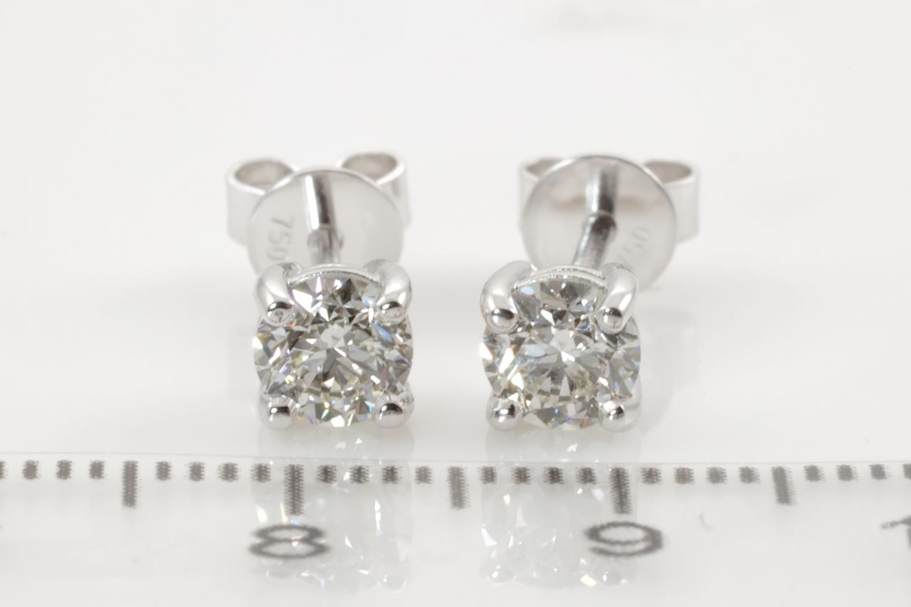 Diamond stud earrings with 2 Round Diamonds totalling 1.00ct (with GIA report both graded as H SI1 #6213121160, 2213116897). 18ct white gold. Weight: 2.2g. (New)