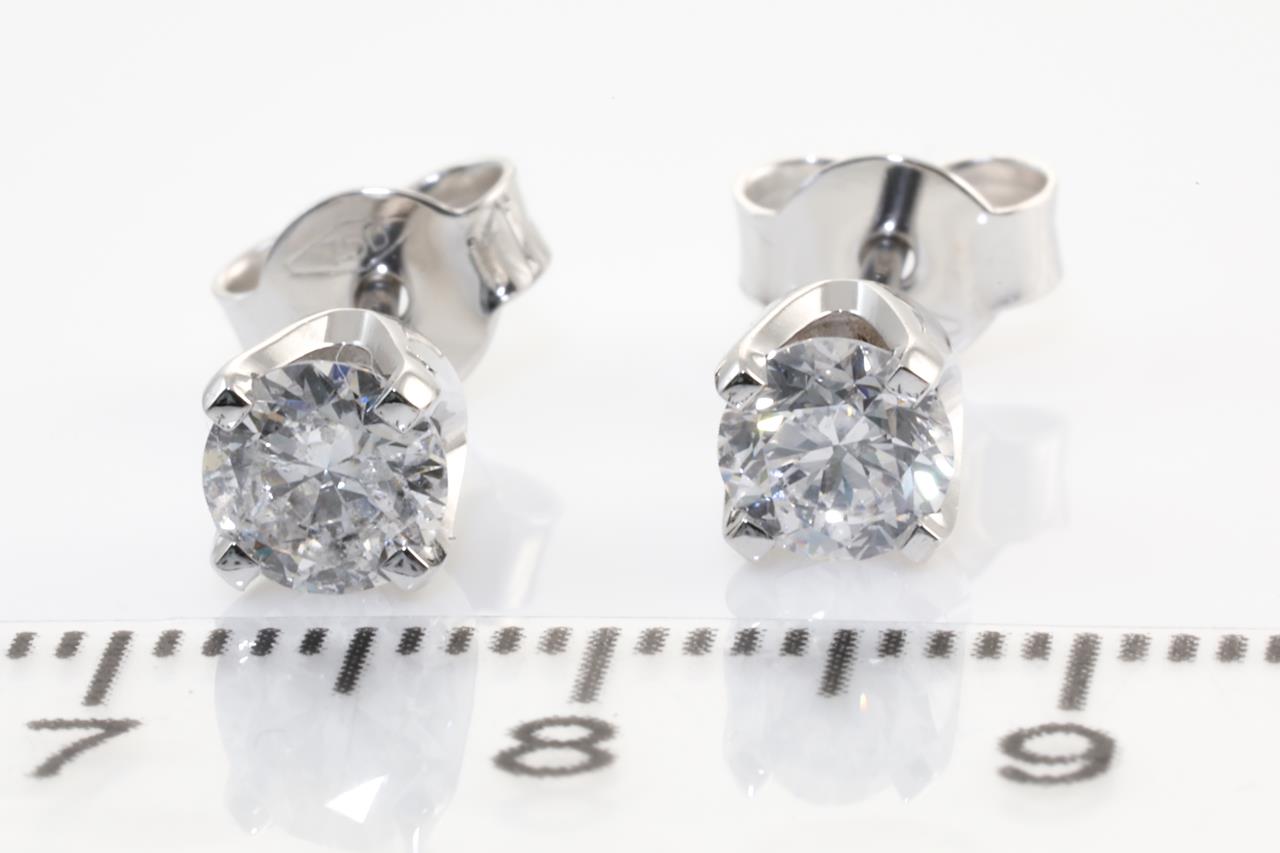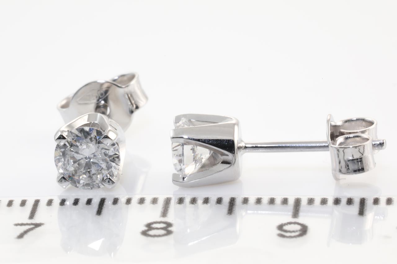 Diamond stud earrings with 2 round brilliant cut Diamonds totalling 1.00cts (Estimated grading: D P1). 18ct White gold. Weight: 1.9g. (New).