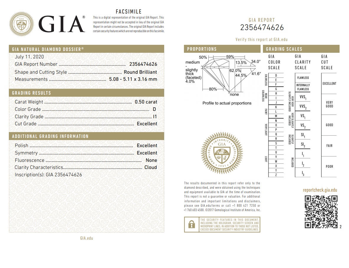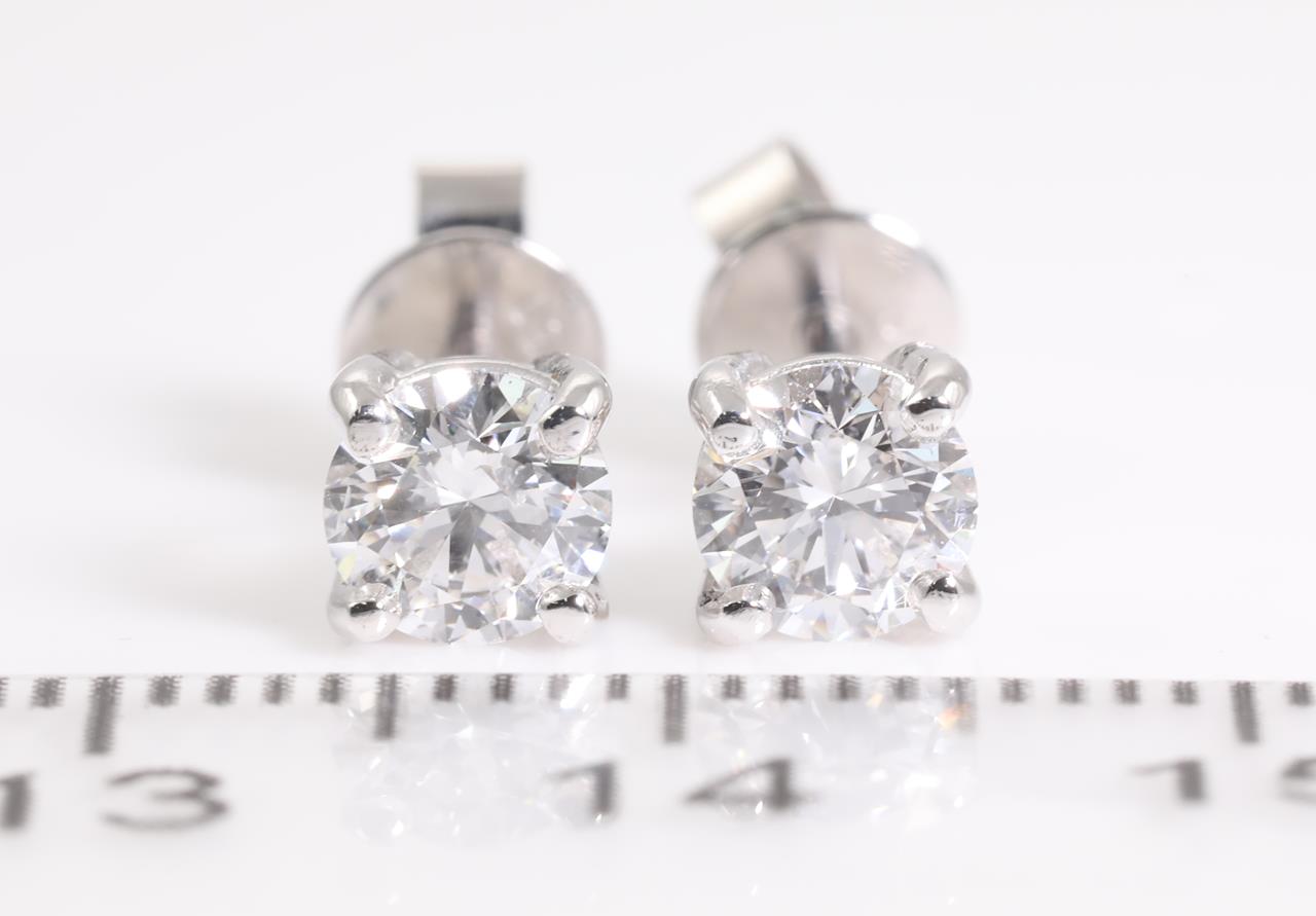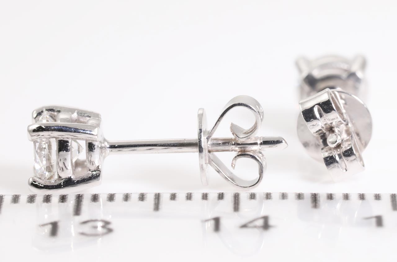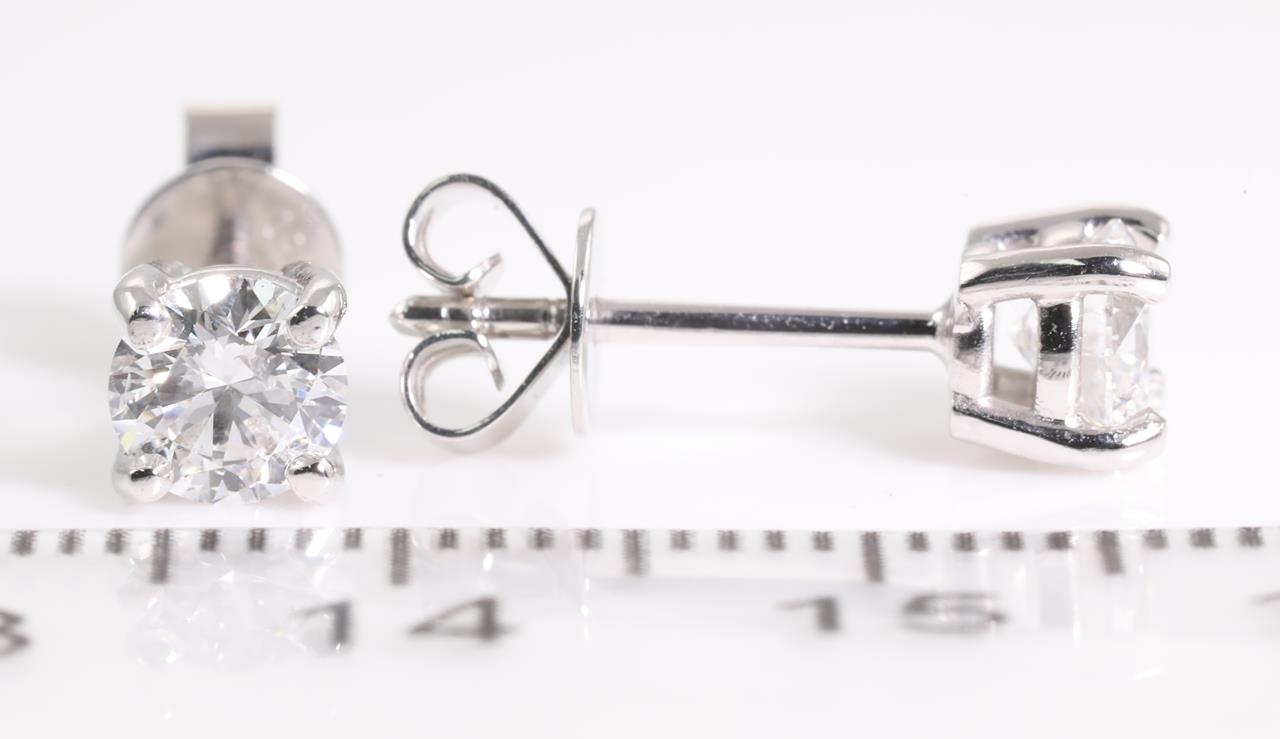 Diamond stud earring with 2 Round Brilliant Cut Diamonds totalling 1.00cts (with GIA summary reports both graded as D P1 #2356474626, 6365872891) set in 18ct white gold. Weight: 2.1g (New)