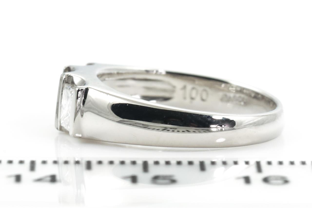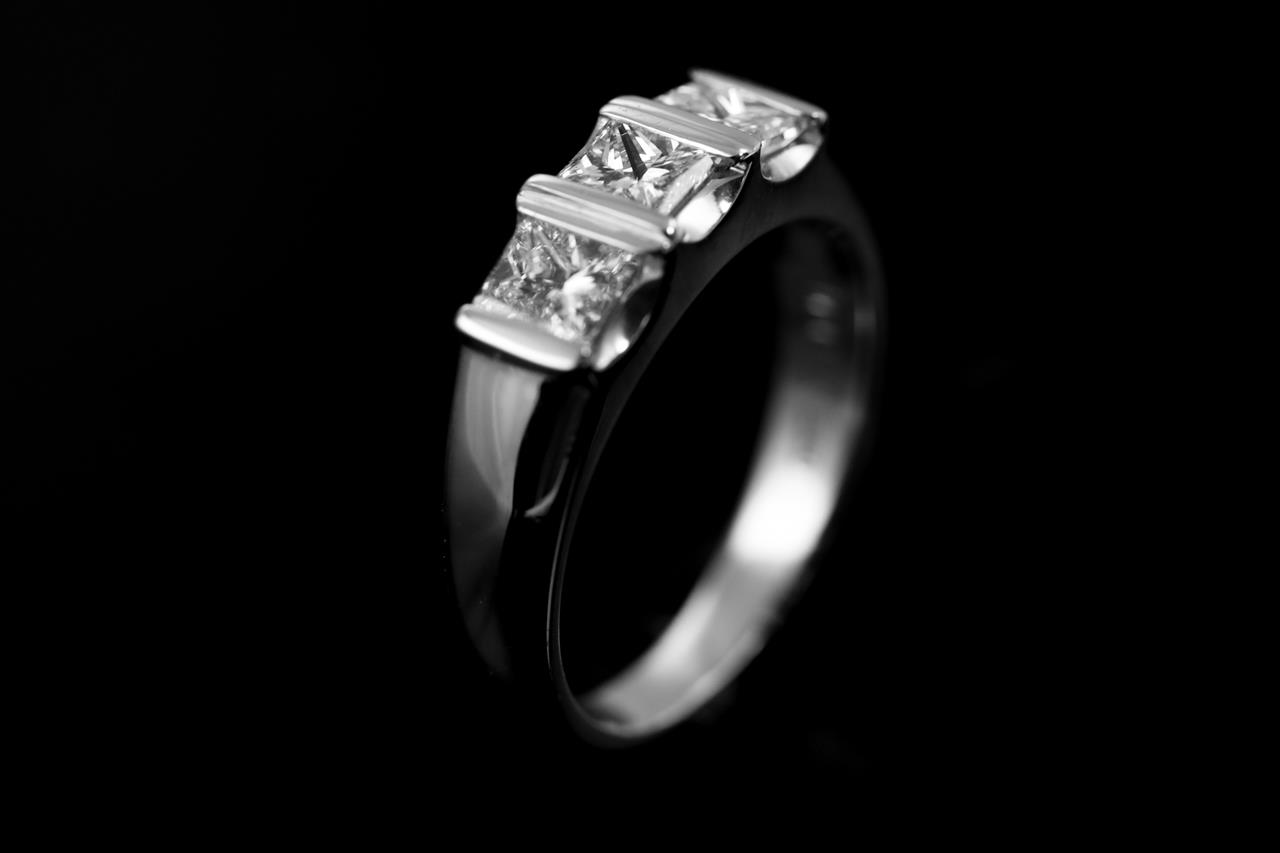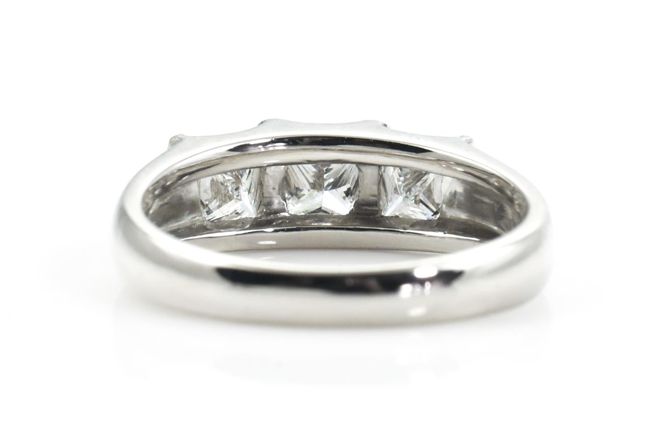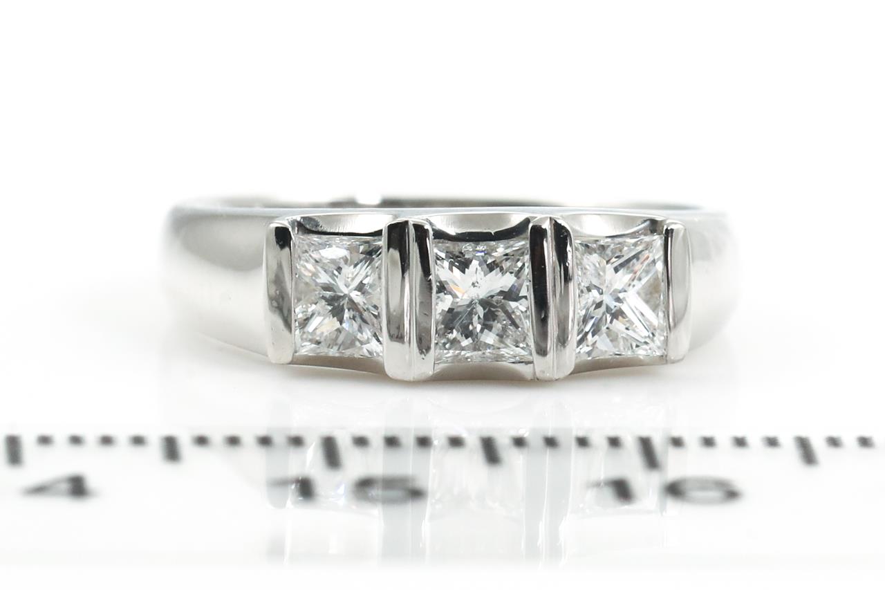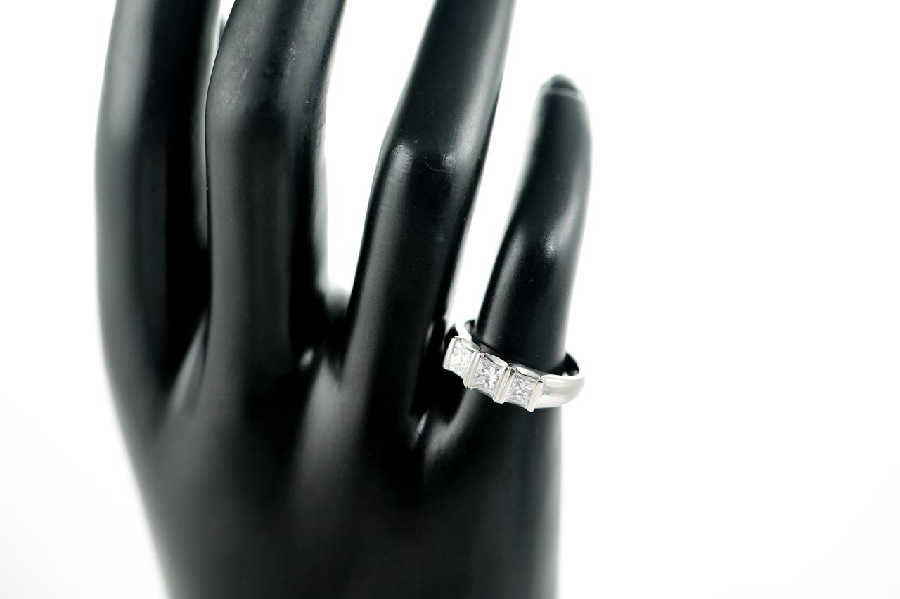Diamond trilogy ring with 3 princess cut Diamonds totalling 1.00cts (Estimated grading: G SI). Platinum. Ring size: L - ring resizing is not recommended. Weight: 6.1g (Pre-owned)