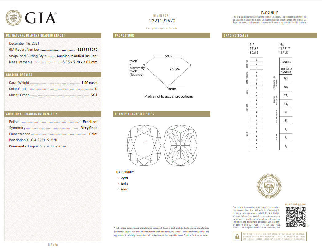 A loose Cushion cut Diamond of 1.00ct (with GIA report graded as D VS1#2221191570). (New)