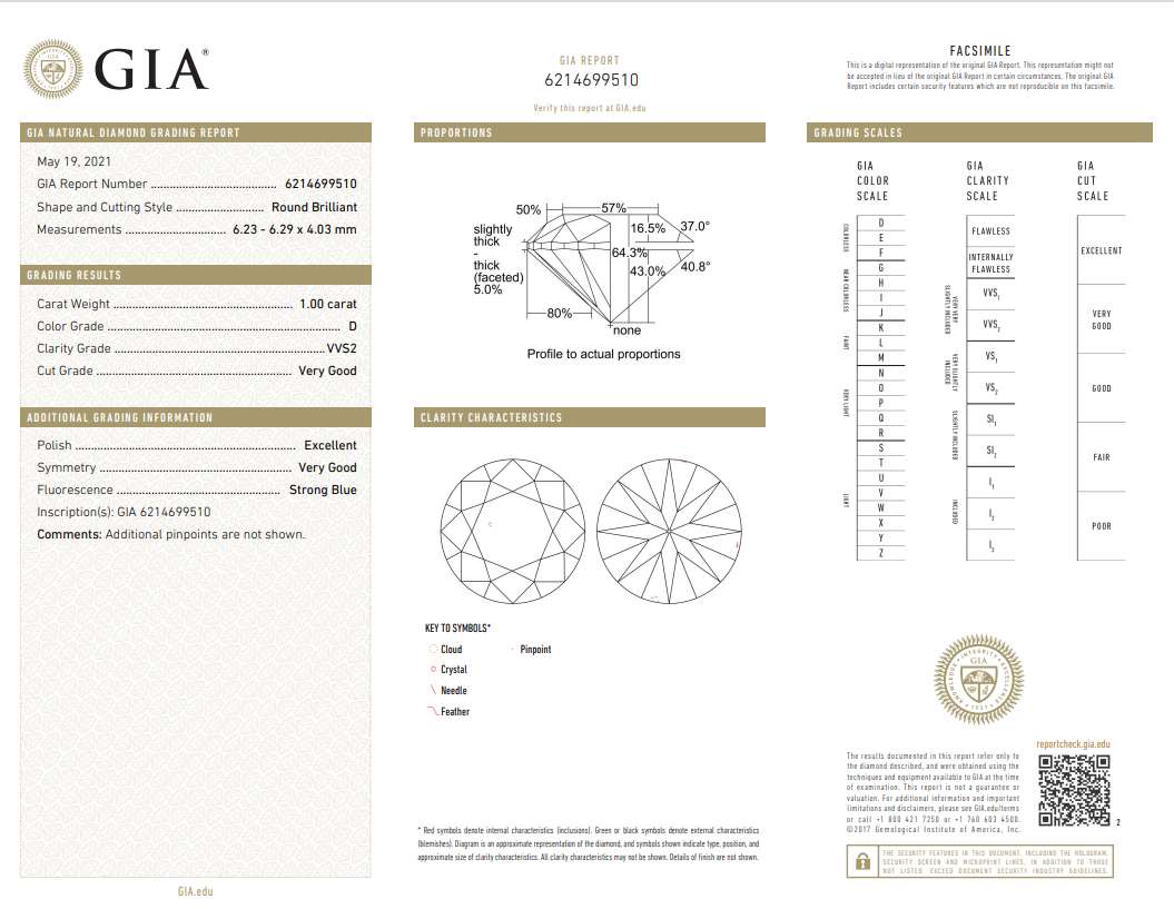 A loose round brilliant cut Diamond of 1.00ct (with GIA report graded as D VVS2 #6214699510). (New)
