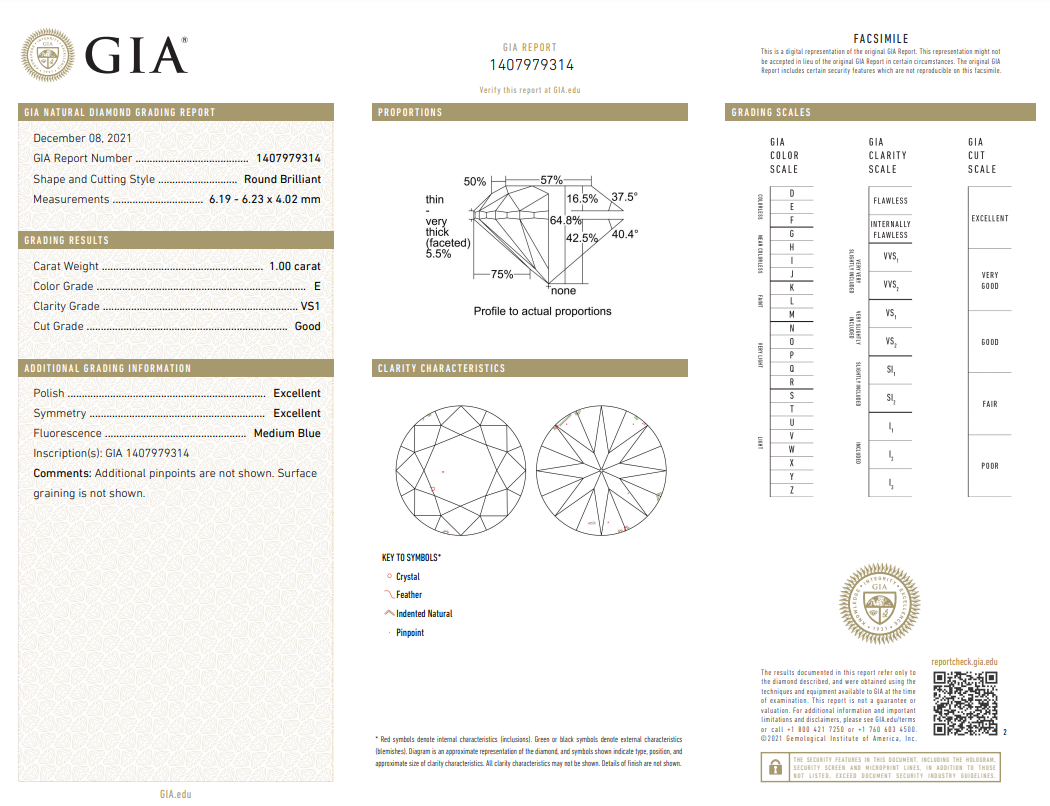 A loose round brilliant cut brilliant cut Diamond of 1.00ct (with GIA report graded as E VS1# 1407979314). (New)