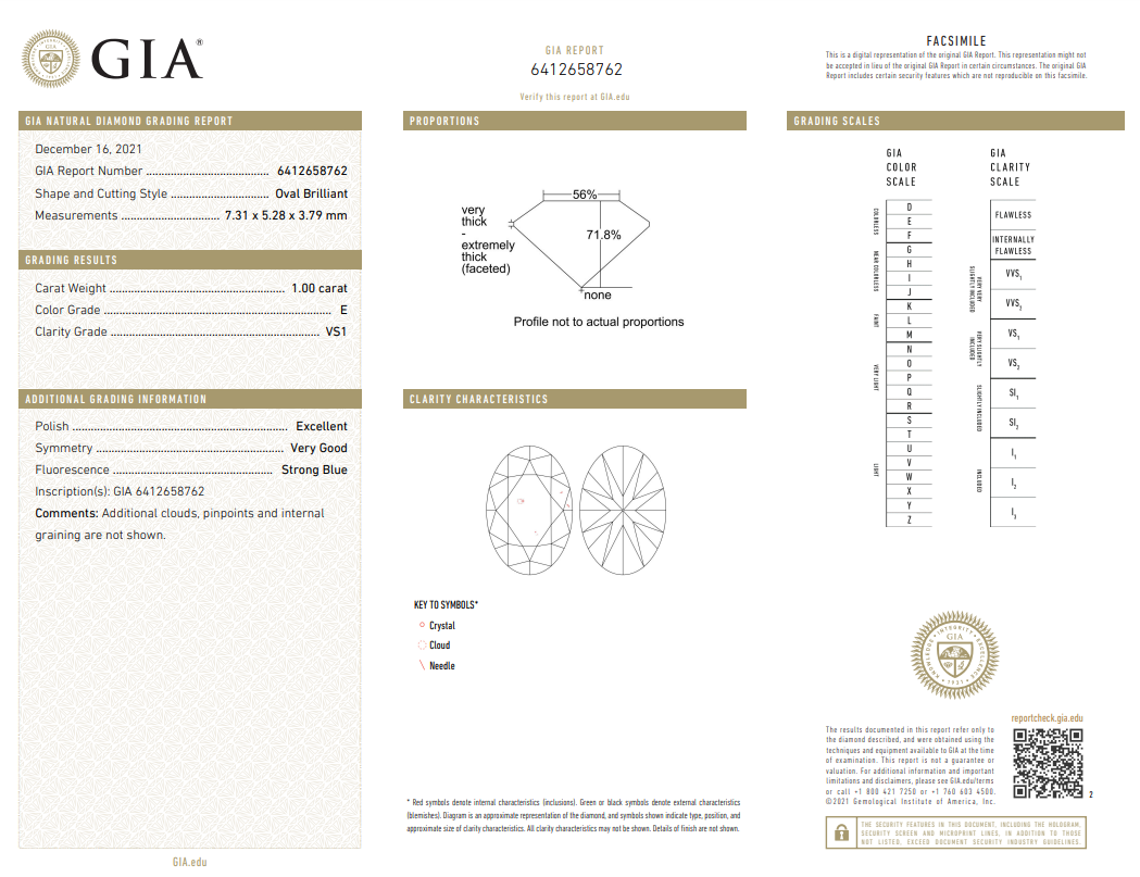 A loose oval shape Diamond of 1.00ct (with GIA report graded as E VS1#6412658762). (New)