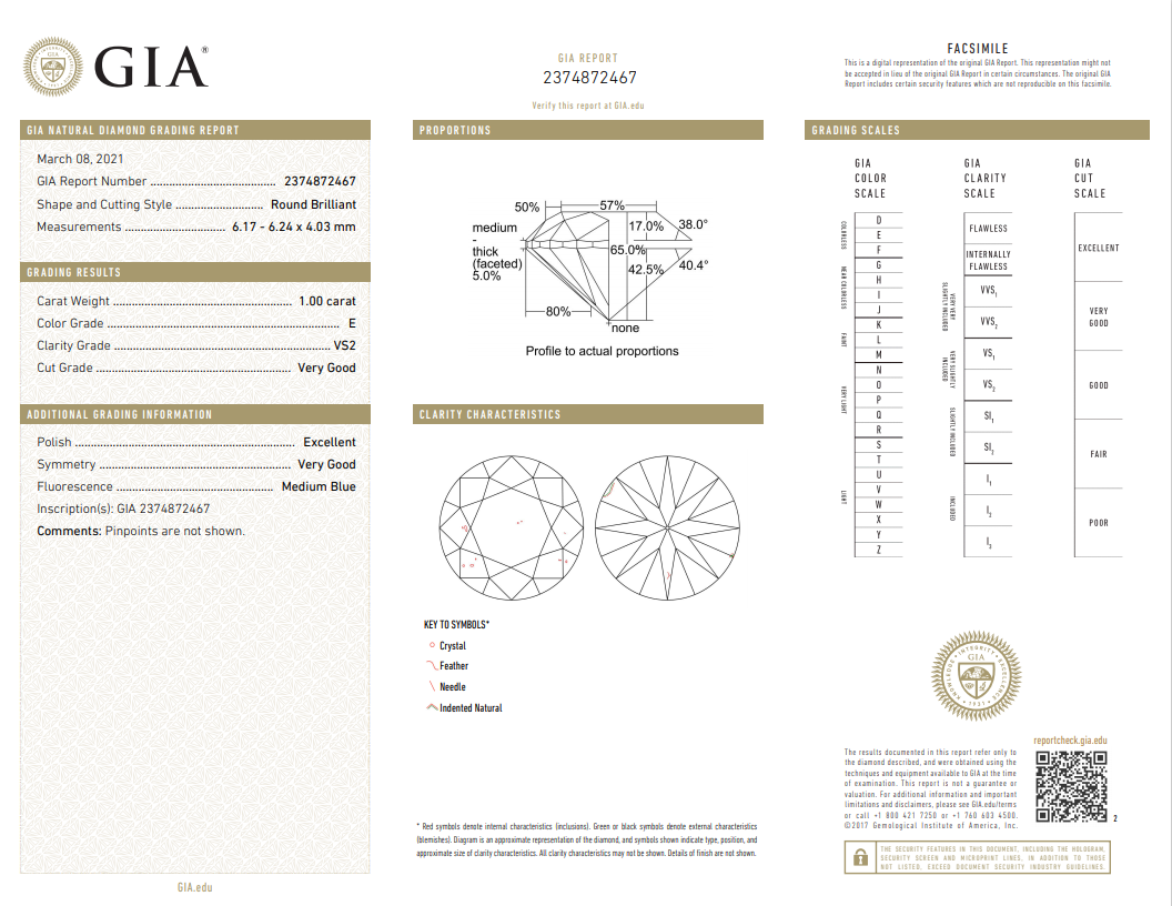 A loose round brilliant cut Diamond of 1.00ct (with GIA report graded as E VS2 #2374872467). (New)