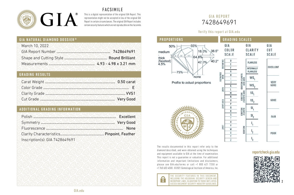 A loose pair of Round Brilliant Cut Diamonds totalling 1.00cts (with GIA report both graded as E VVS1 #7428649691, 2225311201