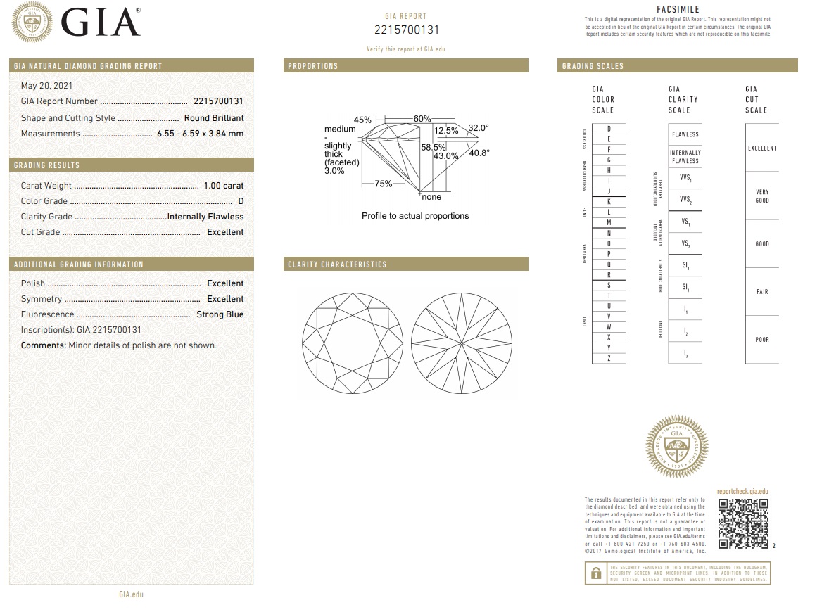 A loose round brilliant cut Diamond of 1.00ct (With GIA report graded as D Internally Flawless #2215700131). (New)