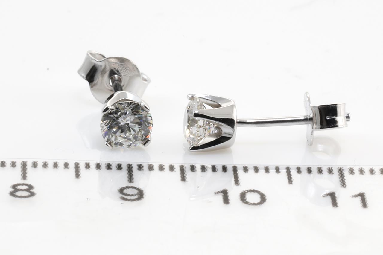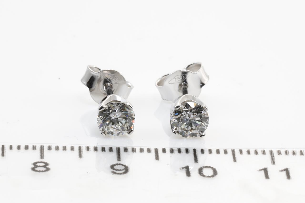 Diamond stud earrings with 2 round brilliant cut Diamonds totalling 1.00cts (Both with GIA summary reports graded as I SI1 #2336114042, 3325008401). 18ct white gold. Weight: 1.6g. (New)