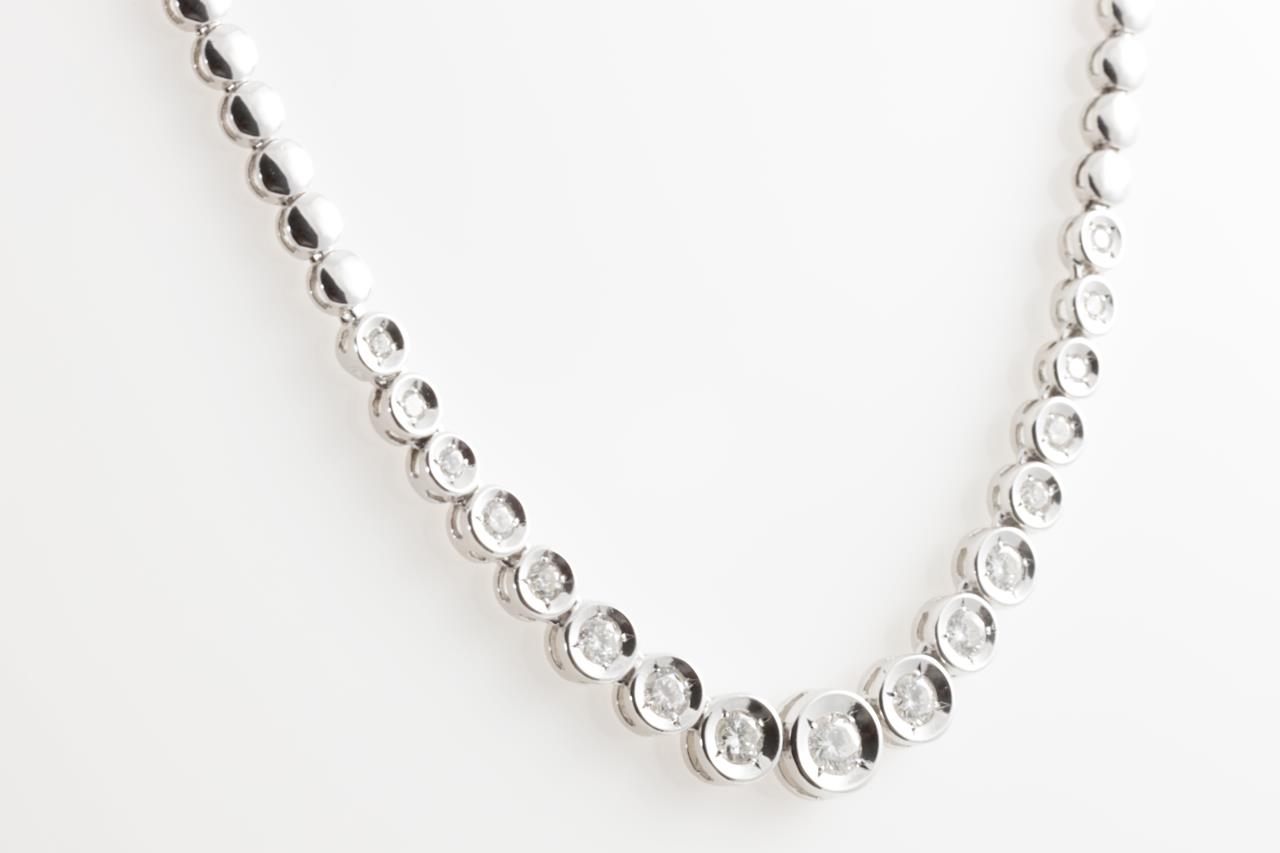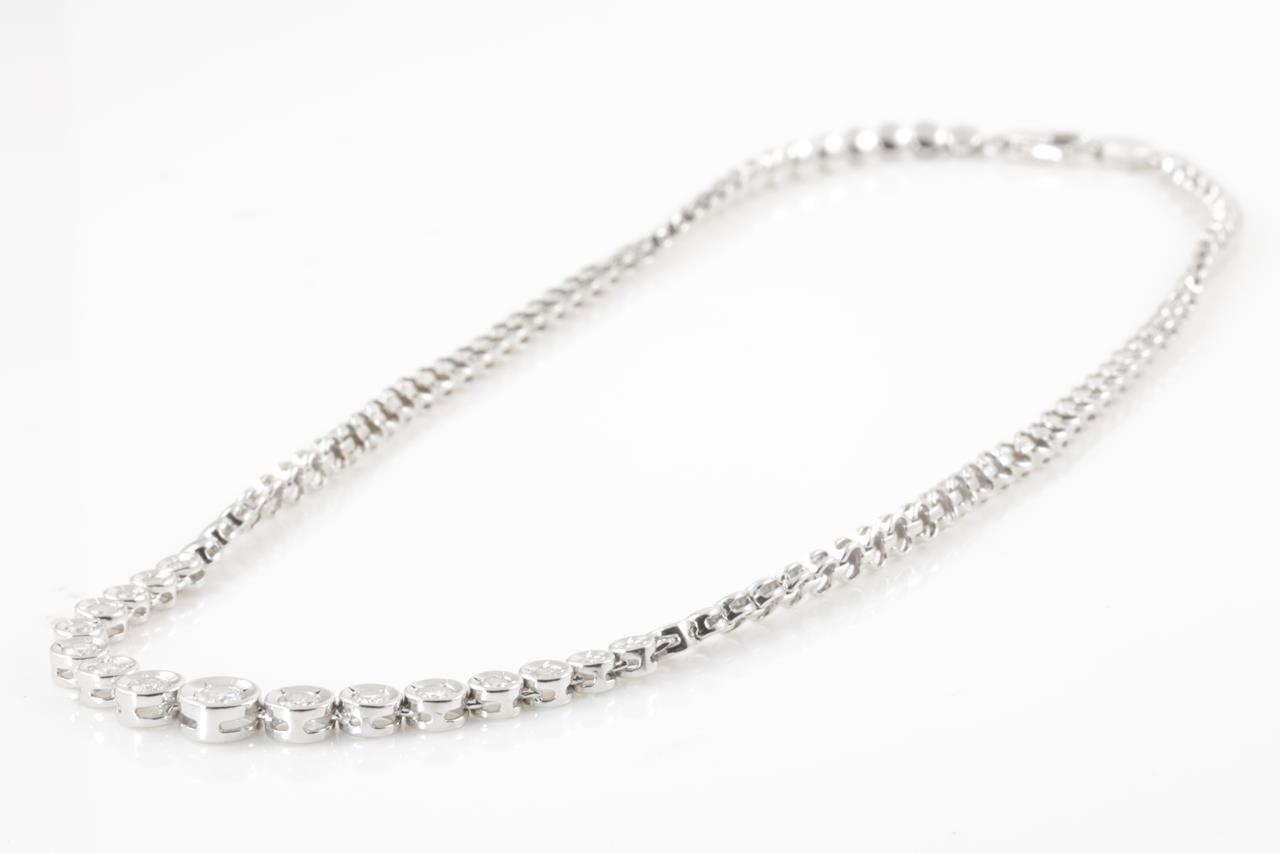 Diamond necklace with Diamonds totalling 1.00cts (Estimated grading: G SI). Platinum. Length: 38cm. Weight: 23.5g (Pre-owned)