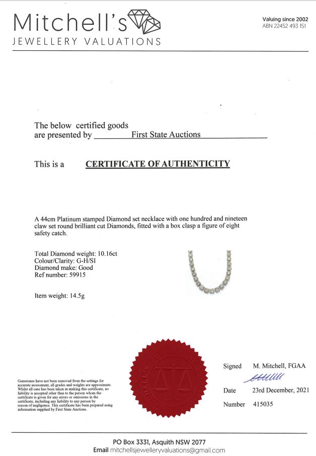 10.16ct Diamond Tennis Necklace | First State Auctions