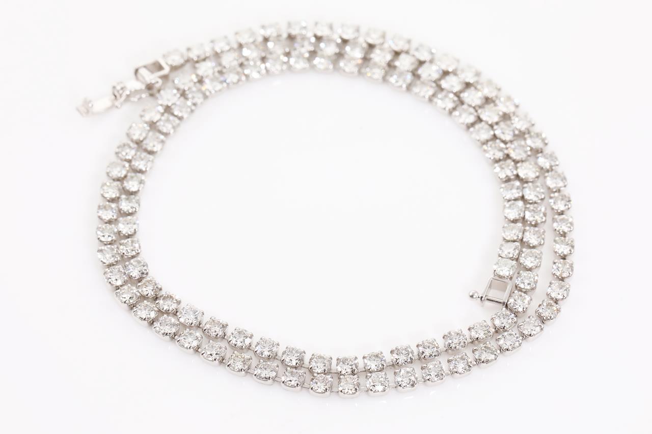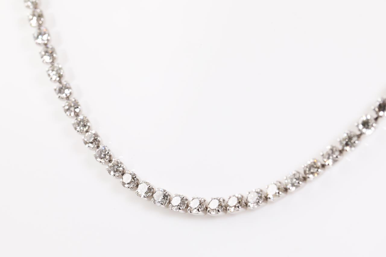 Diamond tennis necklace with 119 round Diamonds totalling 10.16cts (Estimated grading: G-H SI). Platinum. Length: 44cm. Weight: 14.5g. With certificate #415035. (Pre-owned)