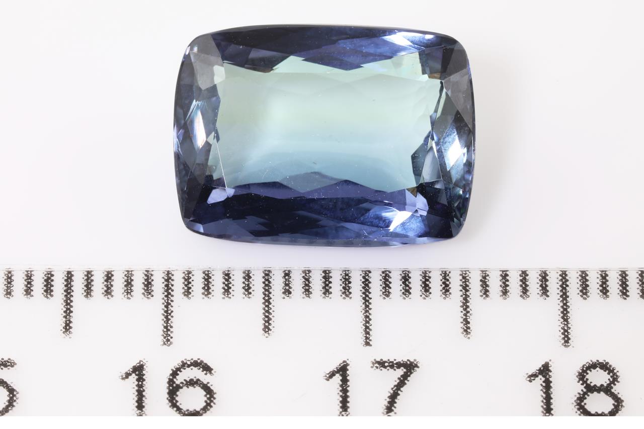 A loose cushion cut Tanzanite of 10.18ct (with GIA report #6204393890. Dimensions:15.4 x 11.4 x 6.0 mm (Pre-owned)