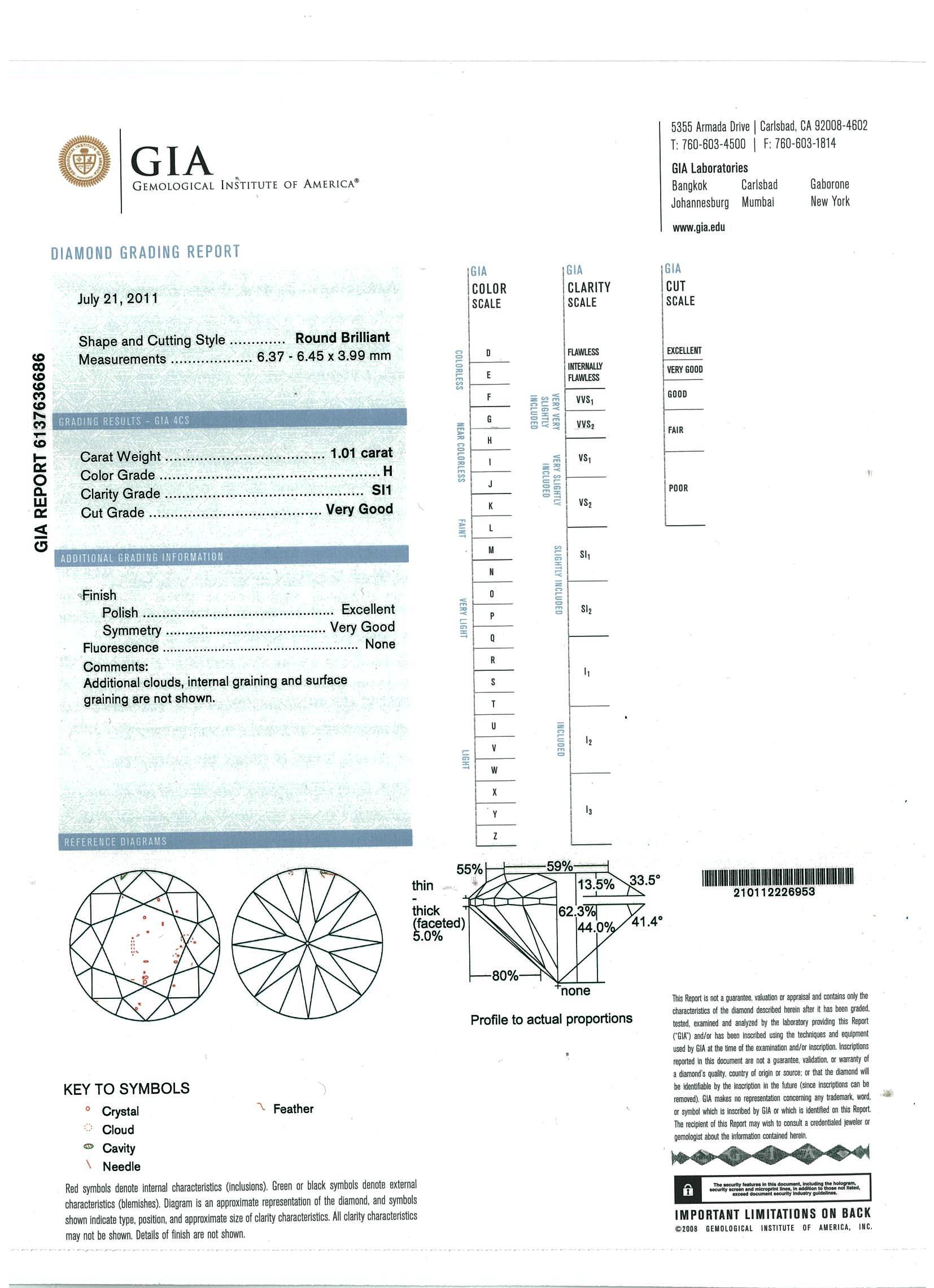 1.01ct Centre Diamond Ring GIA H SI2