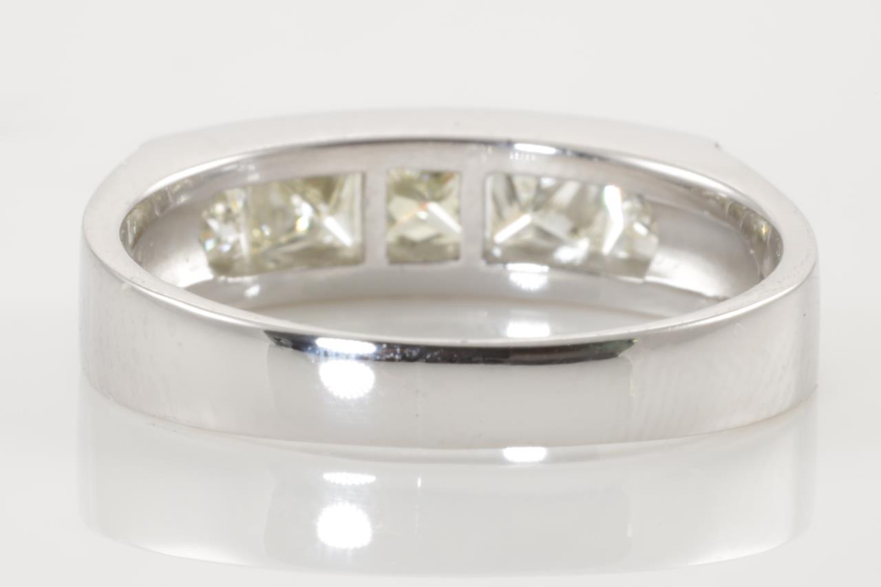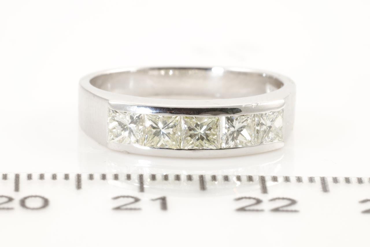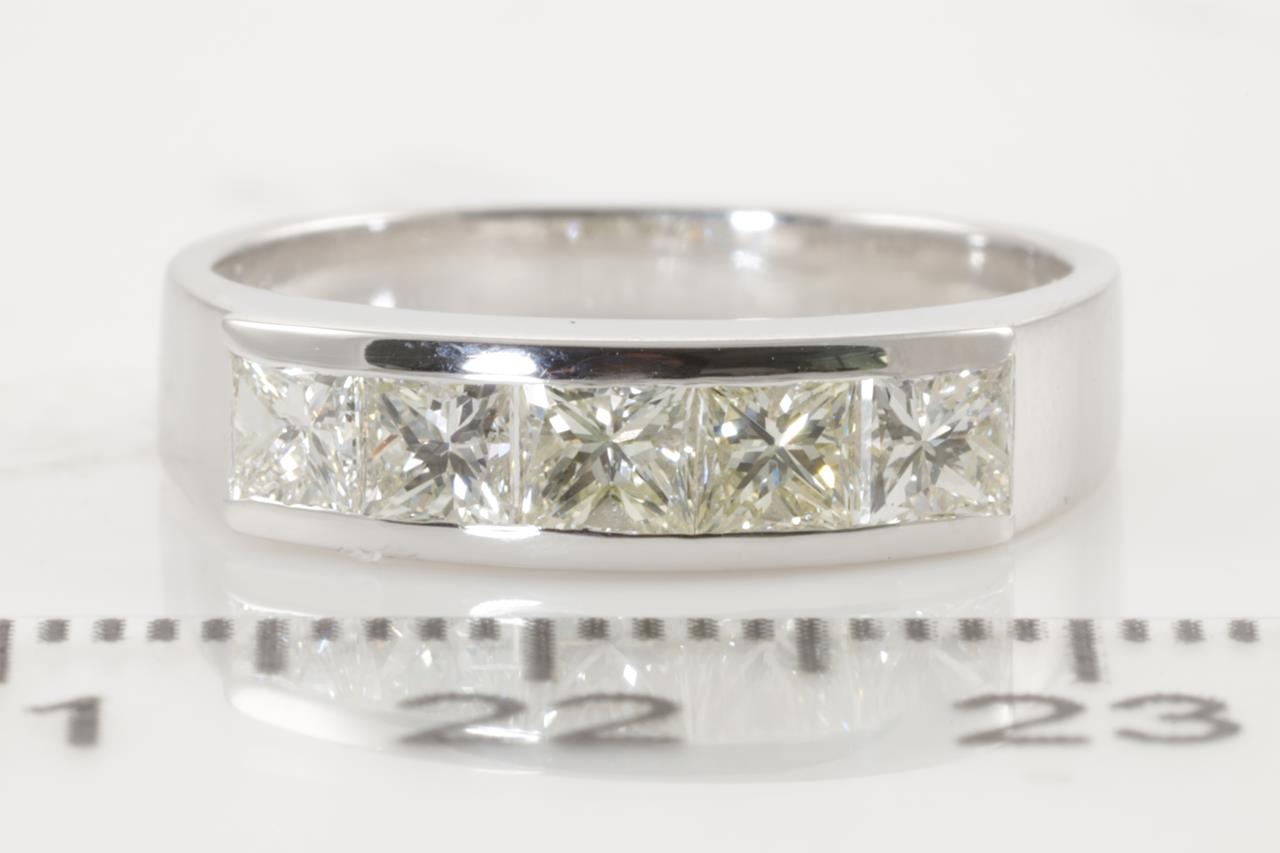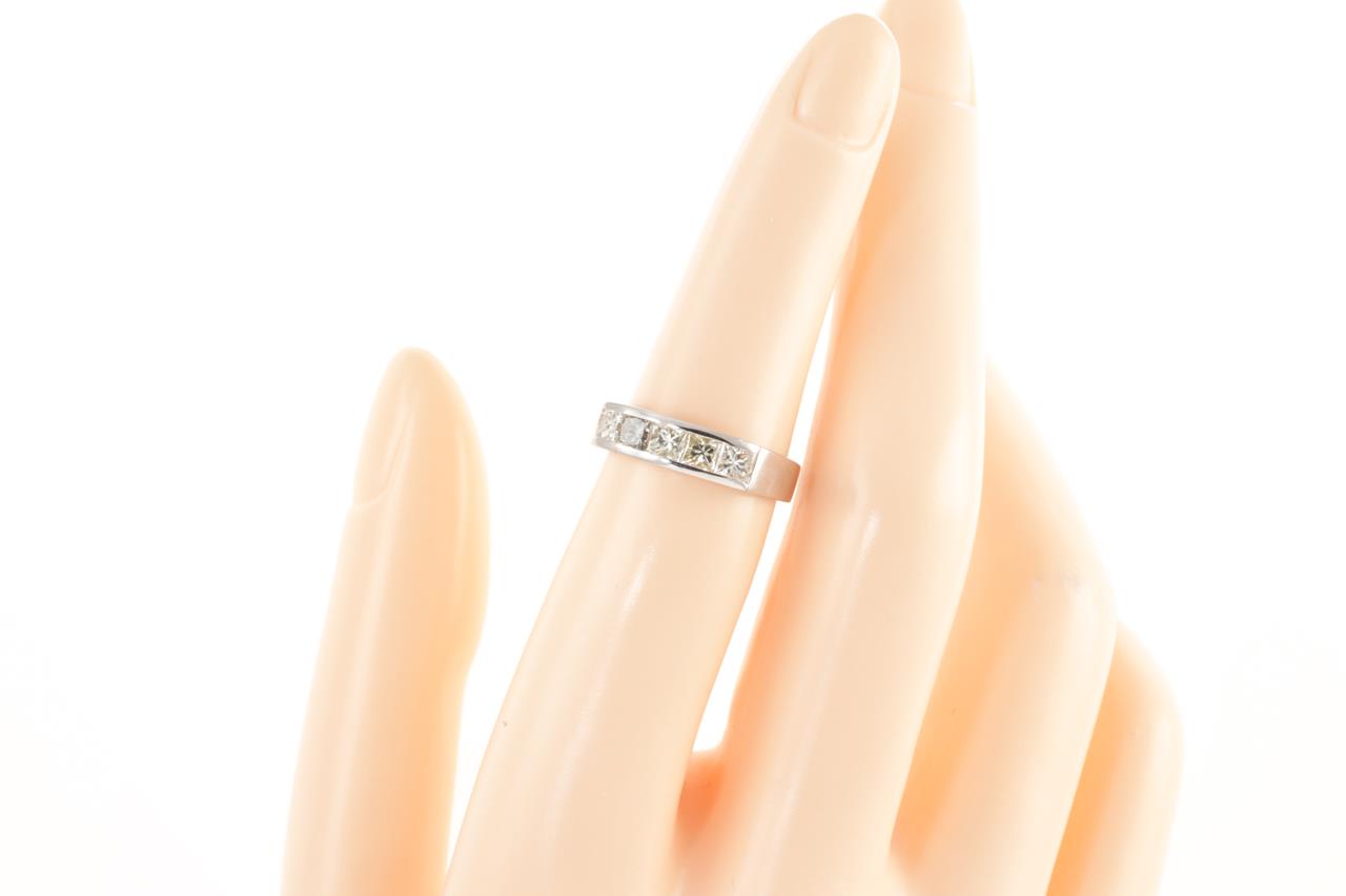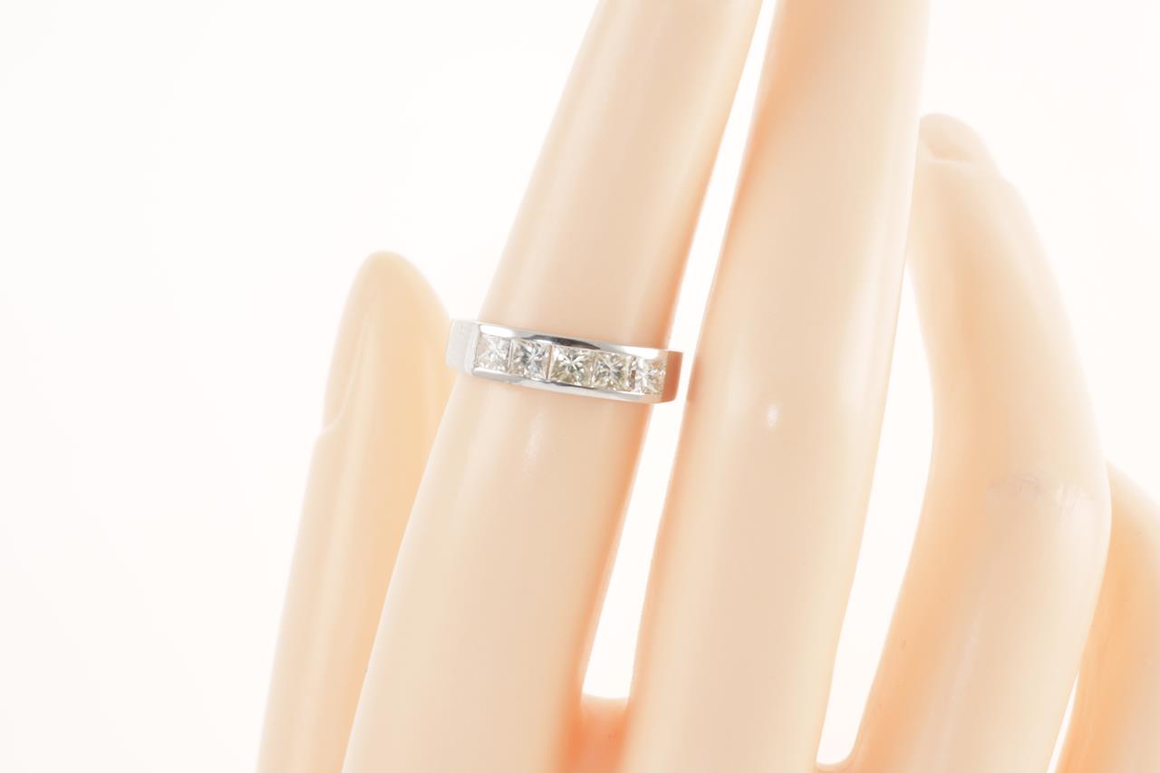 Diamond ring with 5 princess cut Diamonds totalling 1.01cts (Estimated grading: K-L SI-P1). Platinum. Ring size K1/2. Weight: 5.1g. (Pre-owned)