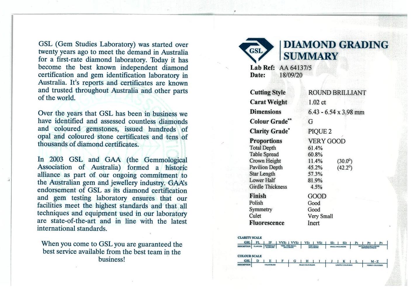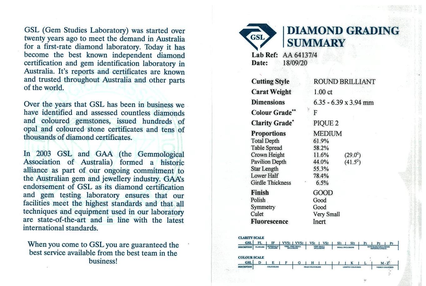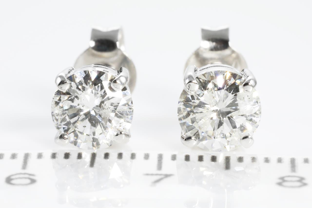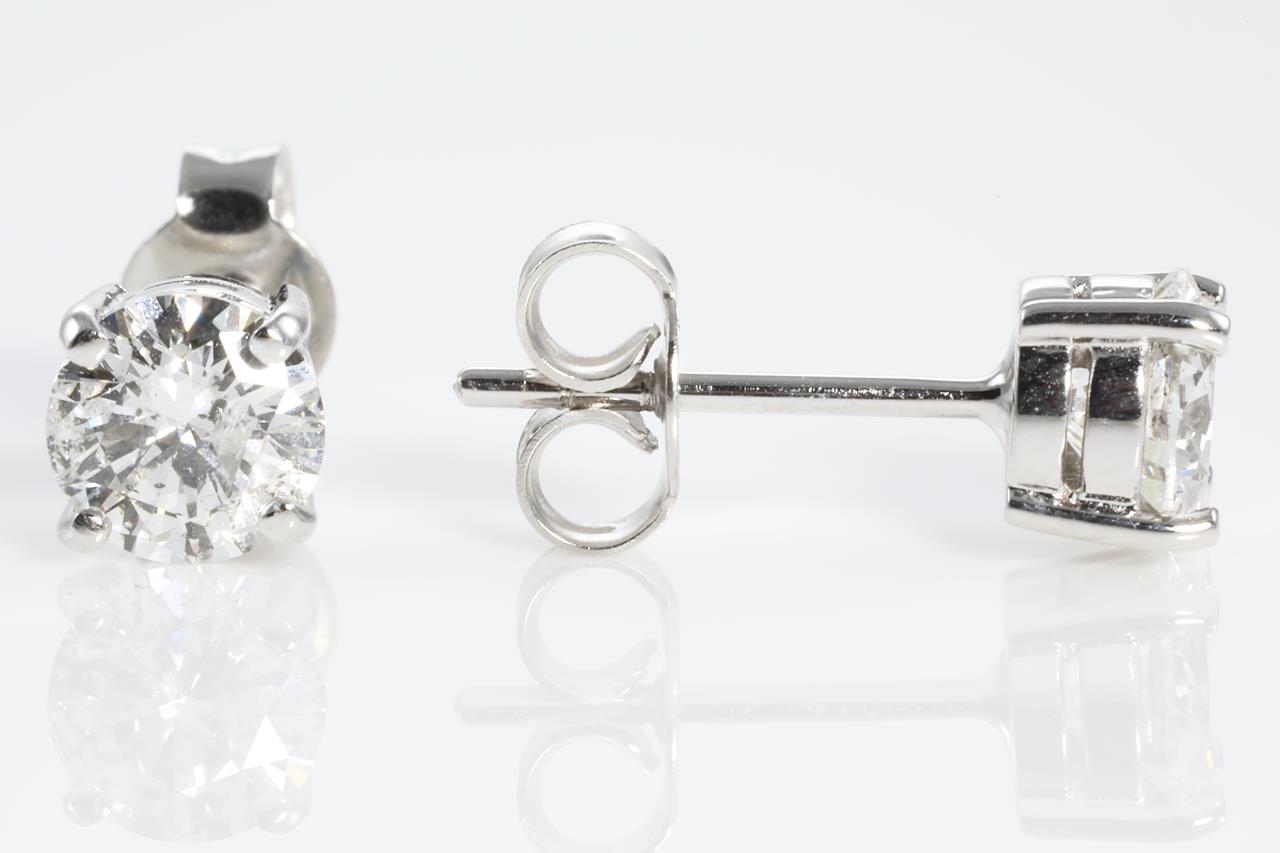 Diamond stud earrings with 2 round brilliant cut Diamonds totalling 2.02cts (both with GSL summary reports graded as G P2 & F P2 #AA64137/5 & AA64137/4). 18ct white gold. Weight: 2.8g (New)