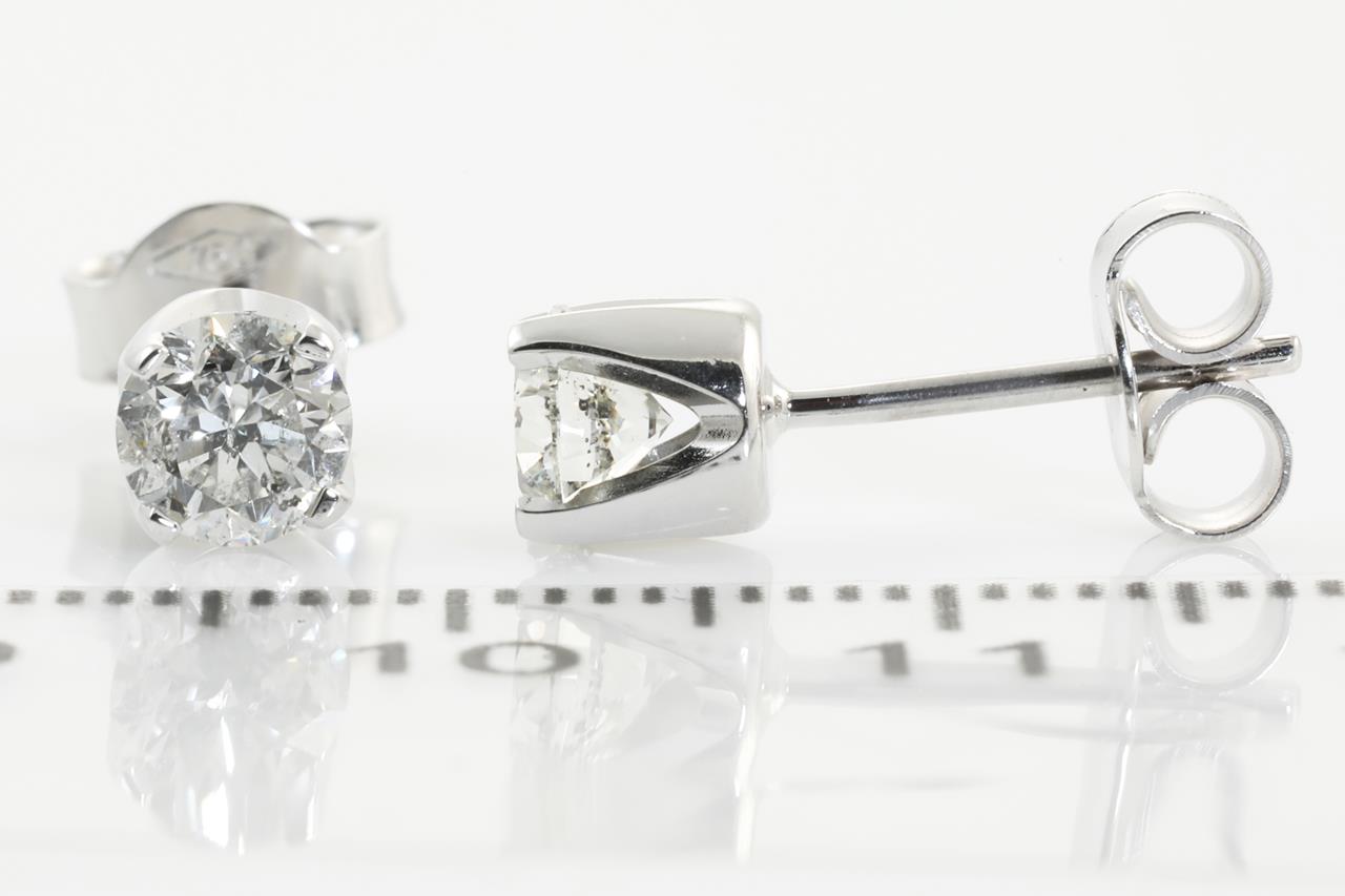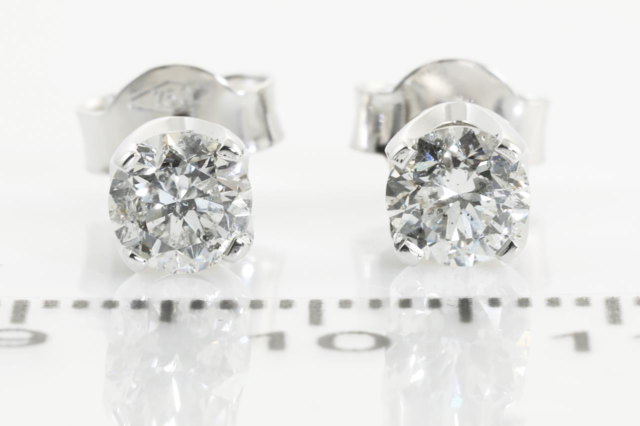 Diamond stud earrings with 2 round brilliant cut Diamonds totalling 1.01cts (Estimated grading: H P1-2). 18ct white gold. Weight: 1.9g. (New).