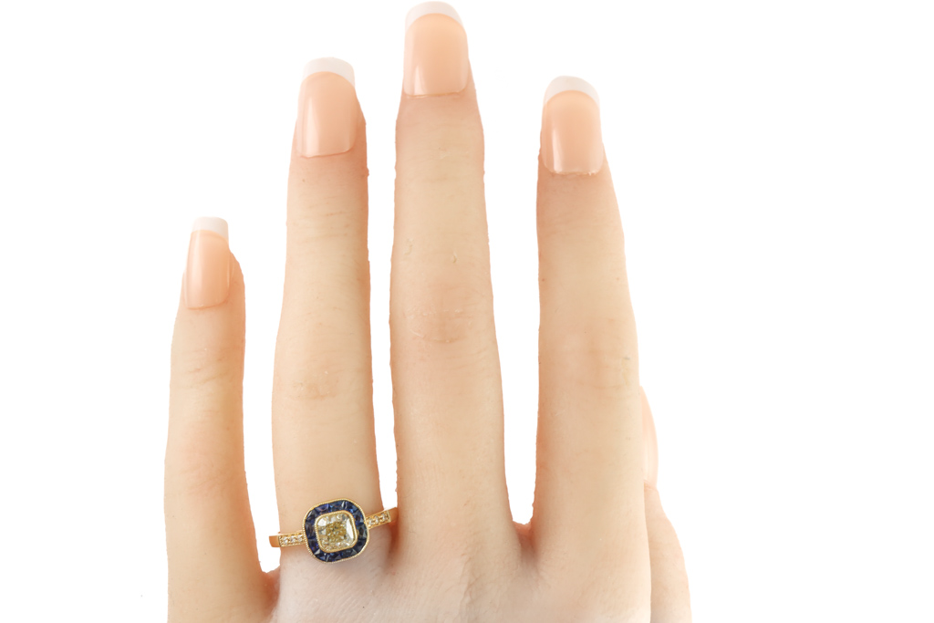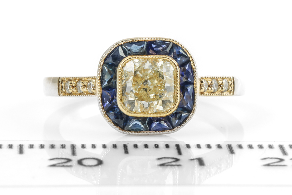 1.01ct Light Yellow Diamond and Sapphire Ring