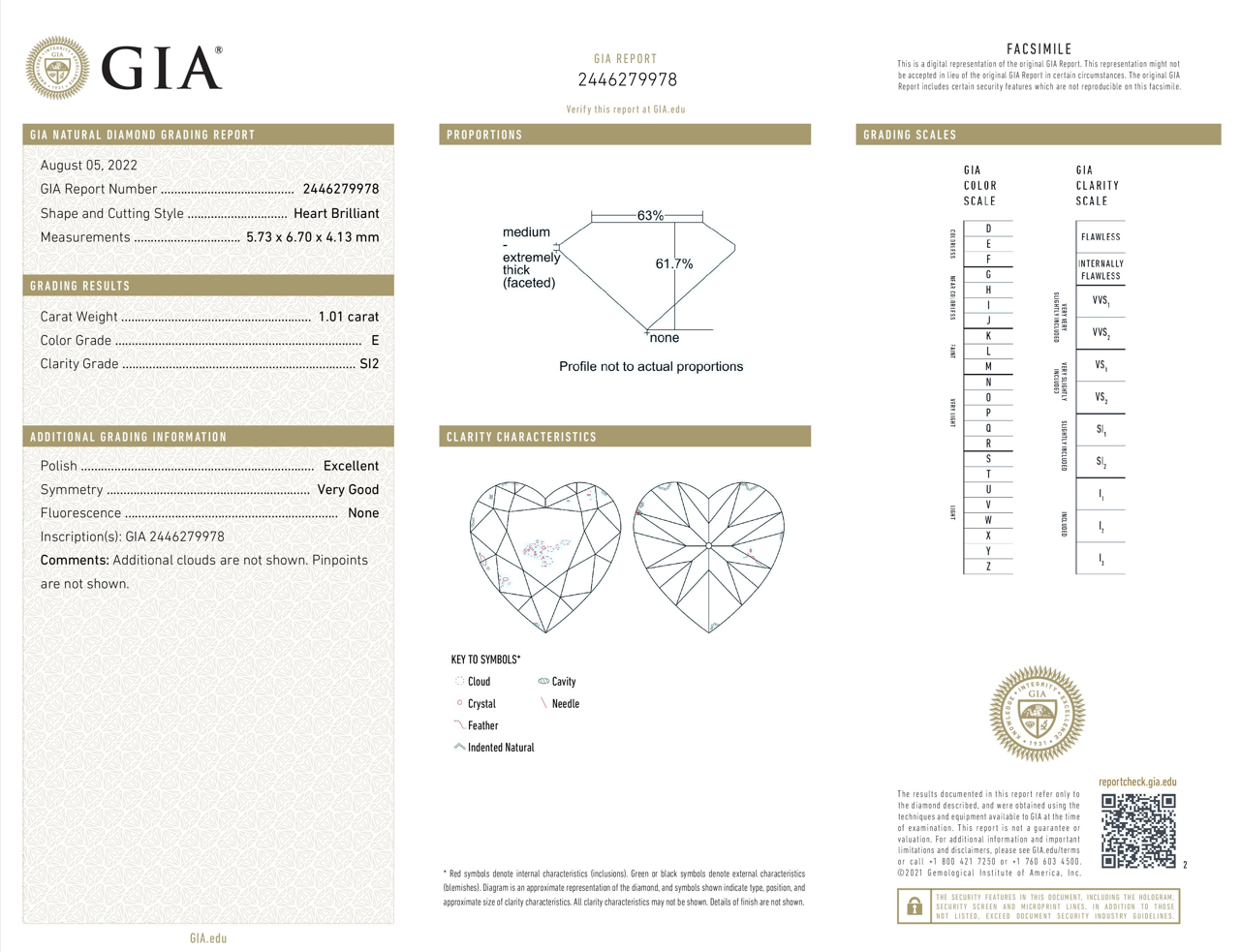 A loose heart shaped Diamond of 1.01ct (with GIA report graded as E SI2#2446279978). (New)