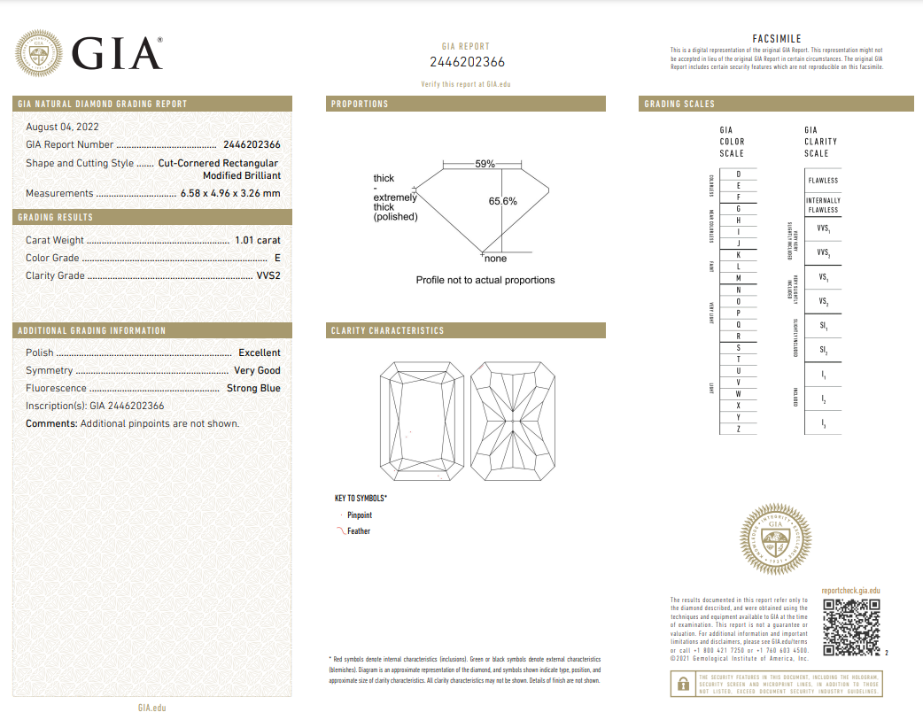 A loose radiant cut Diamond of 1.01ct (With GIA report graded as E VVS2 #2446202366