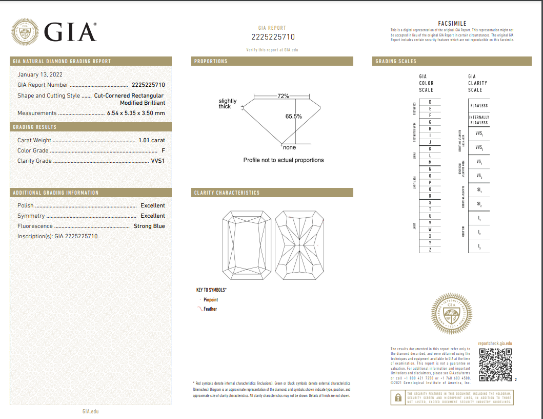 A loose radiant cut Diamond of 1.01ct (with GIA report graded as F VVS1 #2225225710). (New)