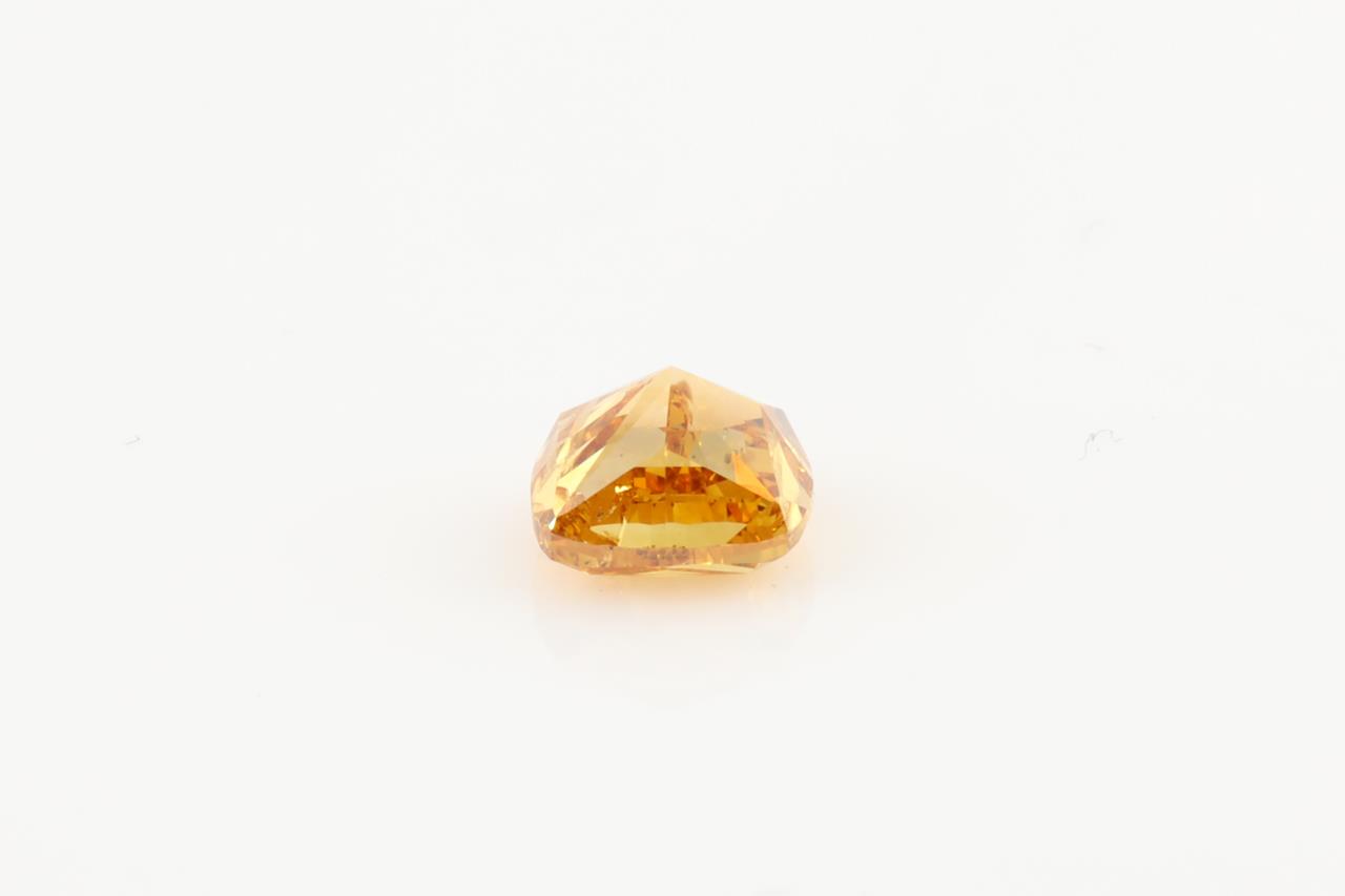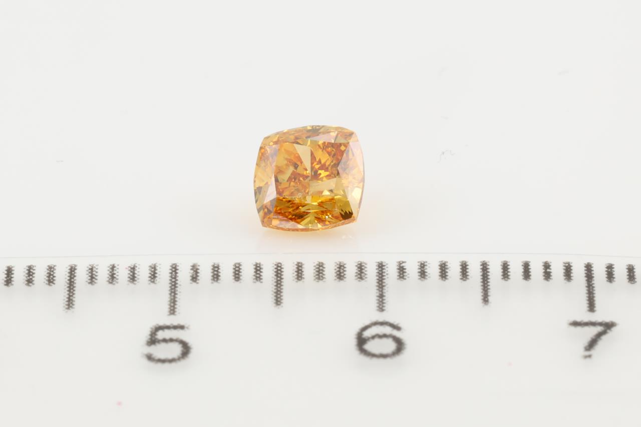 A loose cushion cut Diamond of 1.01ct (with GIA report graded as Natural Fancy Vivid Yellowish Orange Even P1 #2216568699). (New)