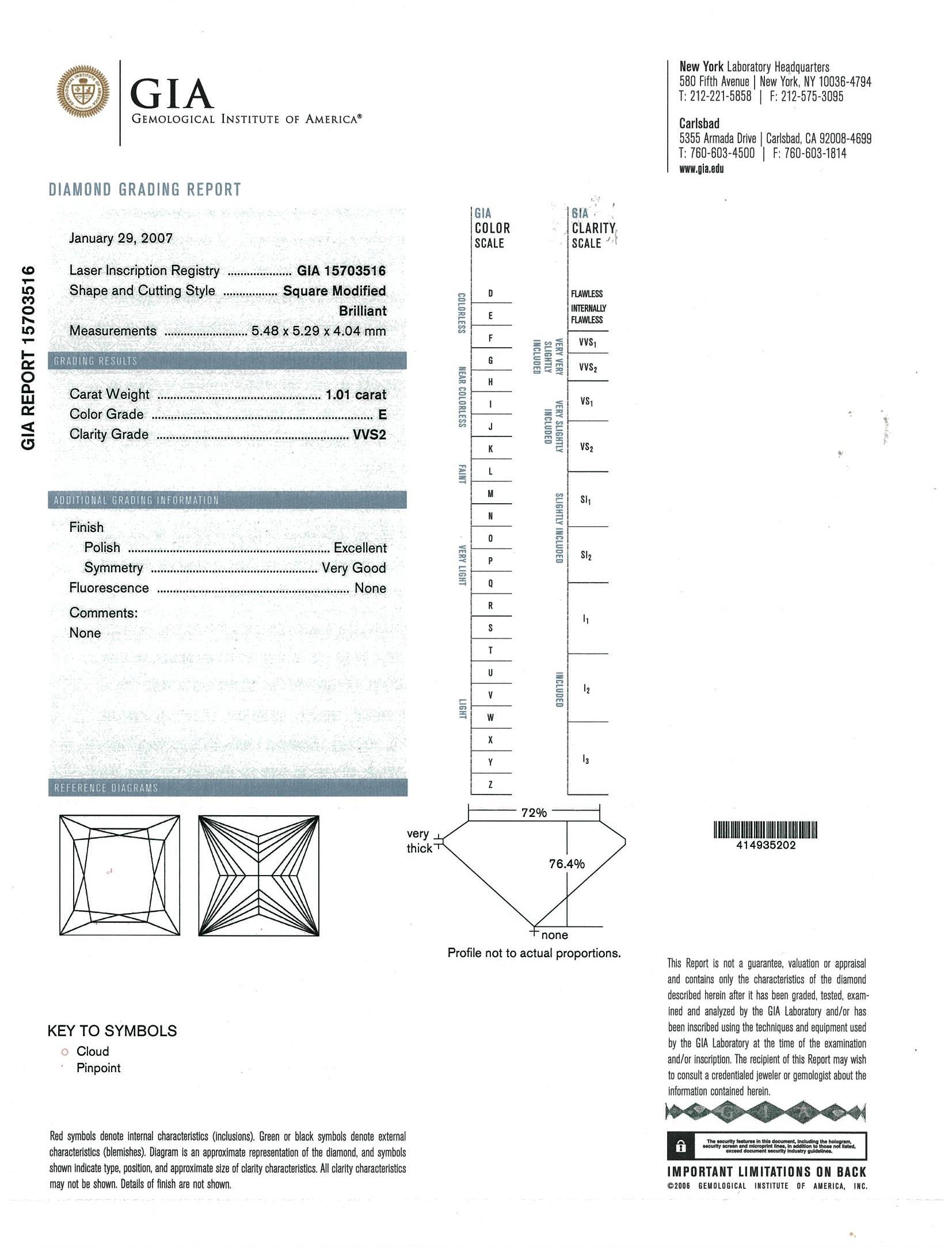 1.01ct Princess Cut Diamond Ring GIA E VVS2 | First State Auctions