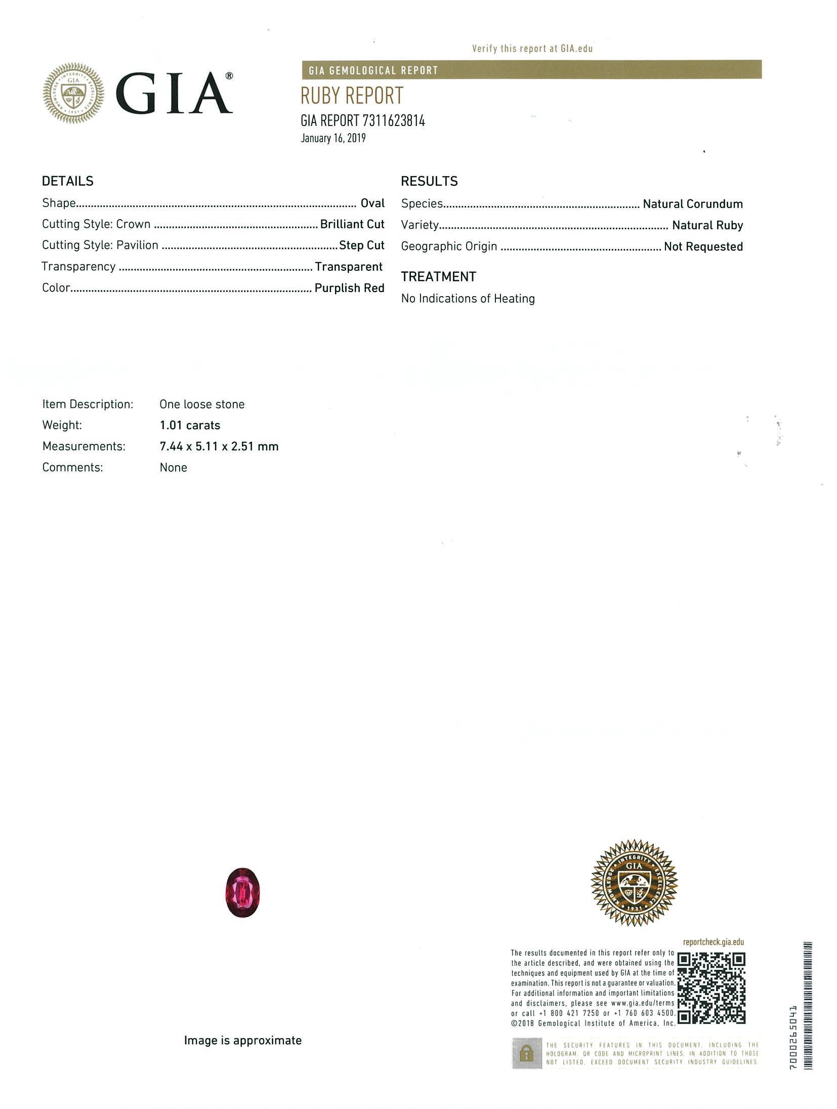 1.01ct Unheated Ruby and Diamond Ring