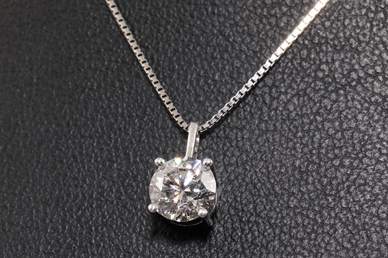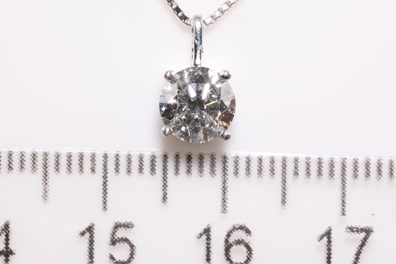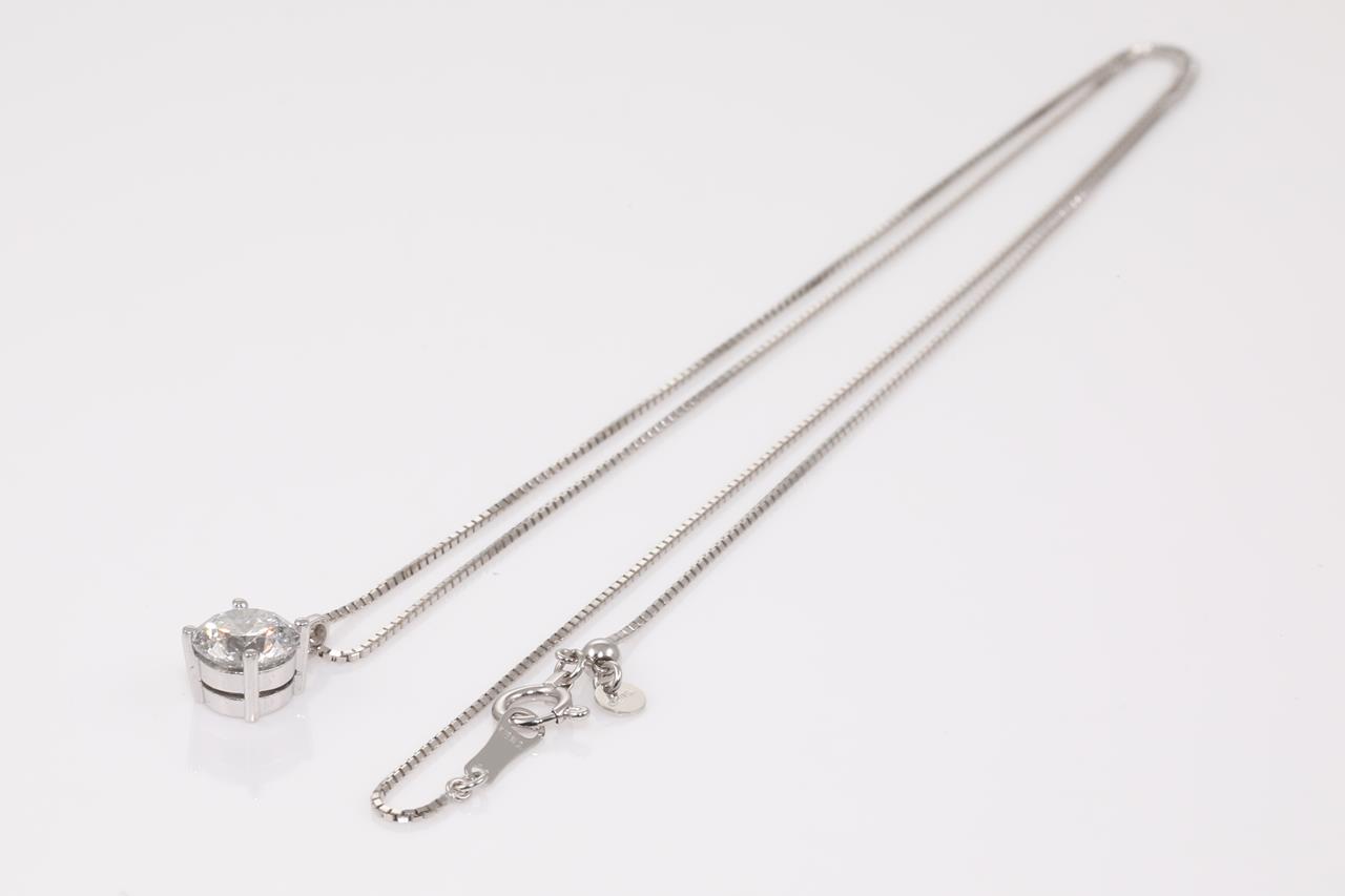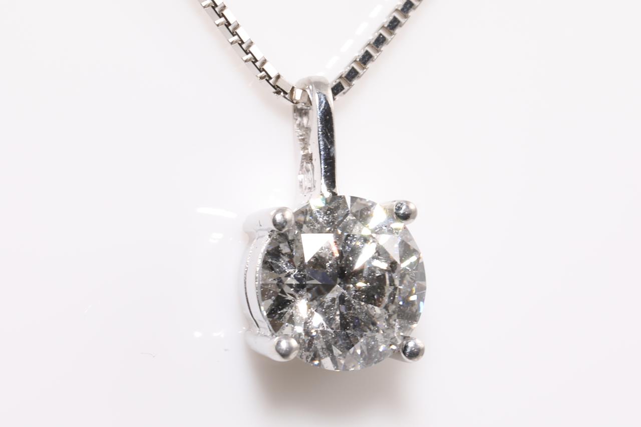 Diamond Solitaire Pendant with round brilliant cut Diamond totalling 1.02cts (With GSL memo graded as G P2 #GSL291121-7). 18ct white gold with 45cm adjustable chain. Weight: 2.8g (New)