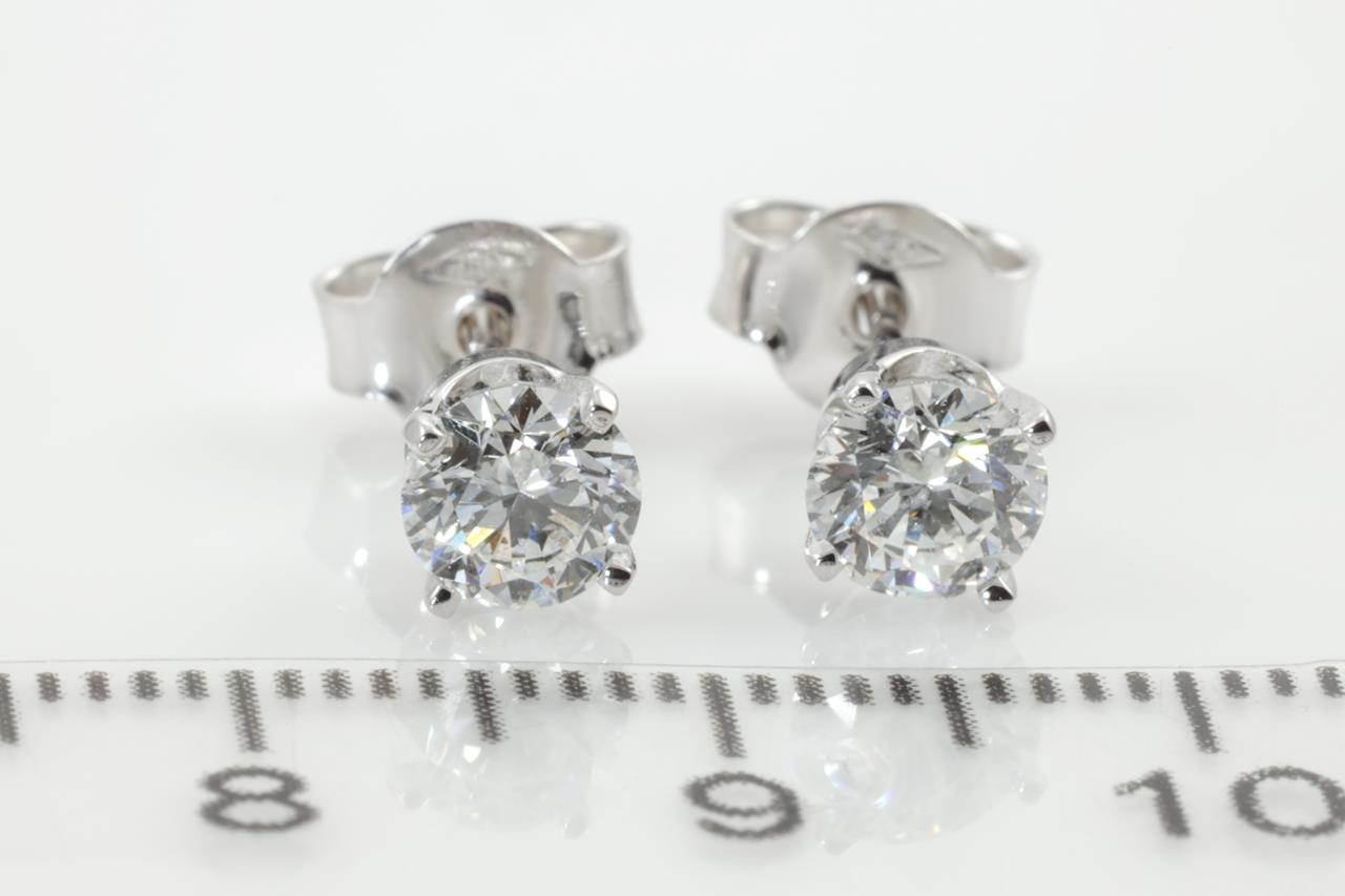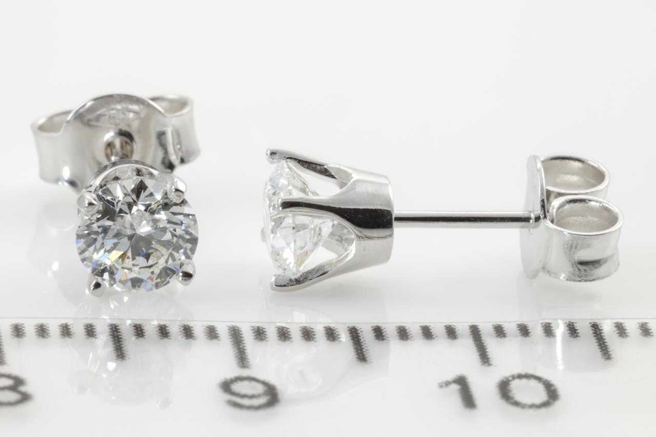Diamond stud earrings with 2 round brilliant cut Diamonds totalling 1.02cts (with GIA reports graded as E P1 #3345656270, 2387553893). 18ct white gold. Weight: 1.6g. (New).