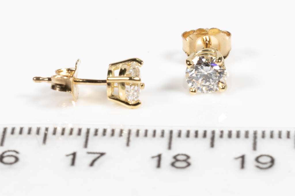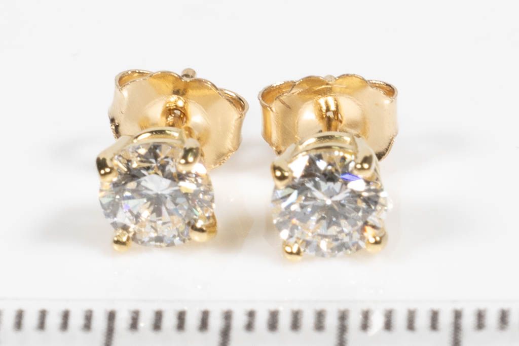 Diamond stud earrings with 2 round brilliant cut Diamonds totalling 1.02cts (both with GIA summary reports graded as E IF #1419886839, 2426822400). 18ct yellow gold. Weight:1.2g. (New)