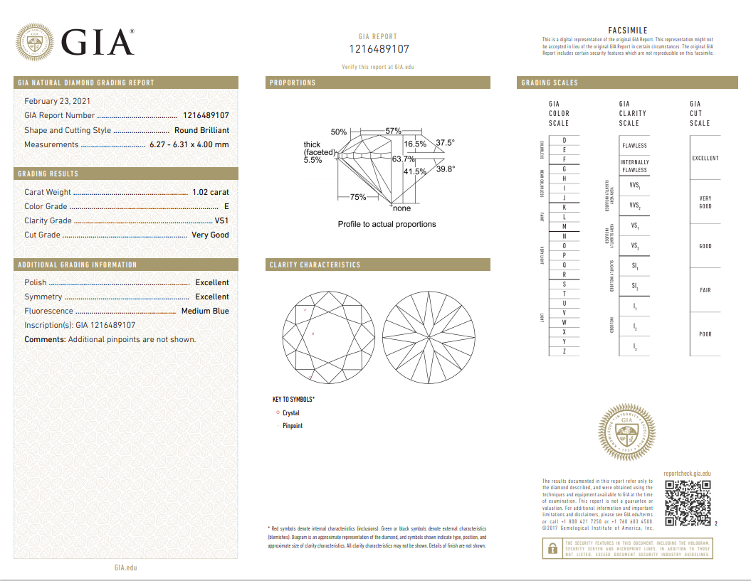 A loose round brilliant cut Diamond of 1.02ct (with GIA report graded as E VS1 #1216489107). (New)