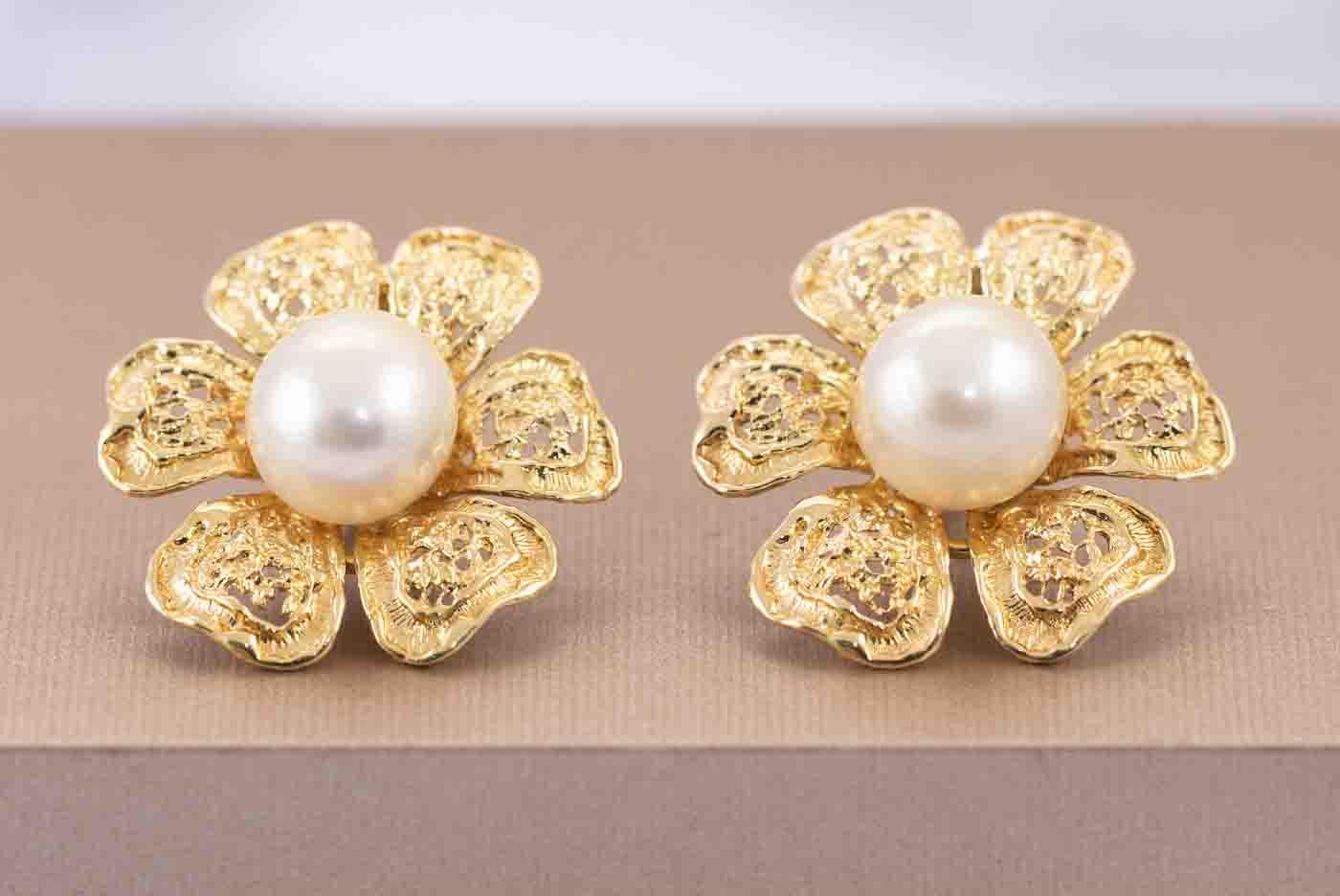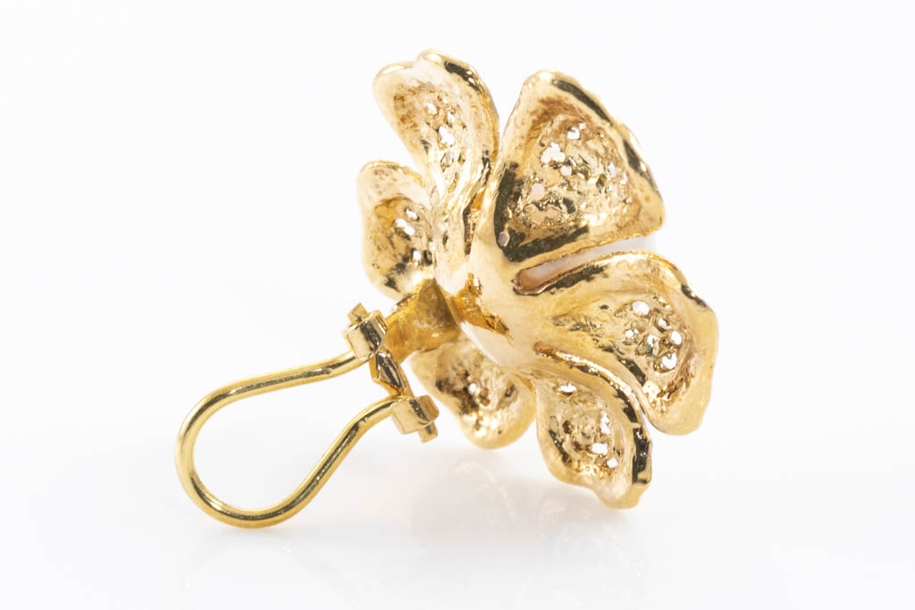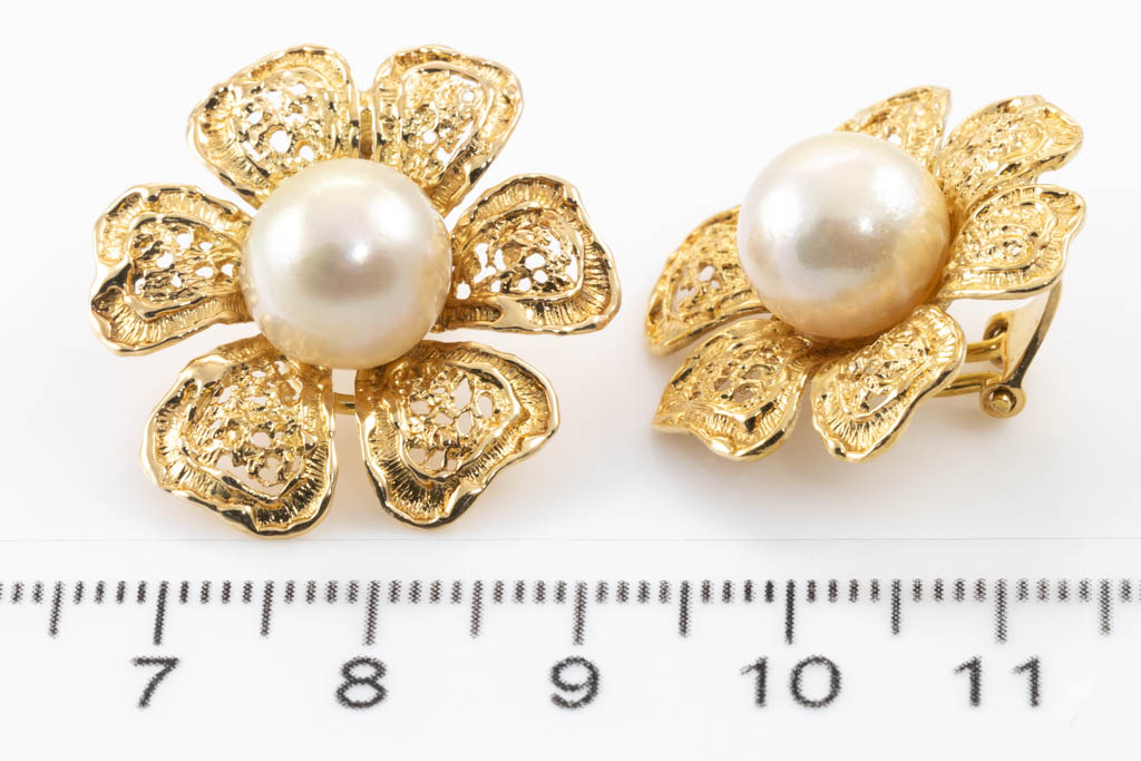 Pearl clip-on earrings with South Sea Pearls of 10.3mm - 10.5mm. 18ct yellow gold. Weight: 12.5g. (Pre-owned)