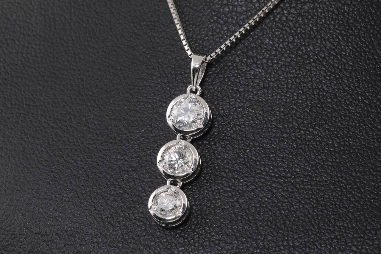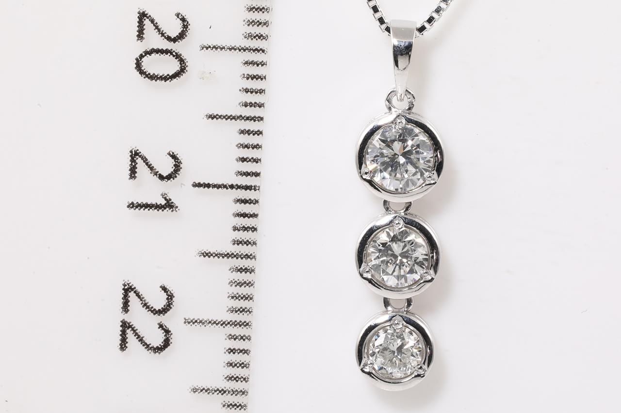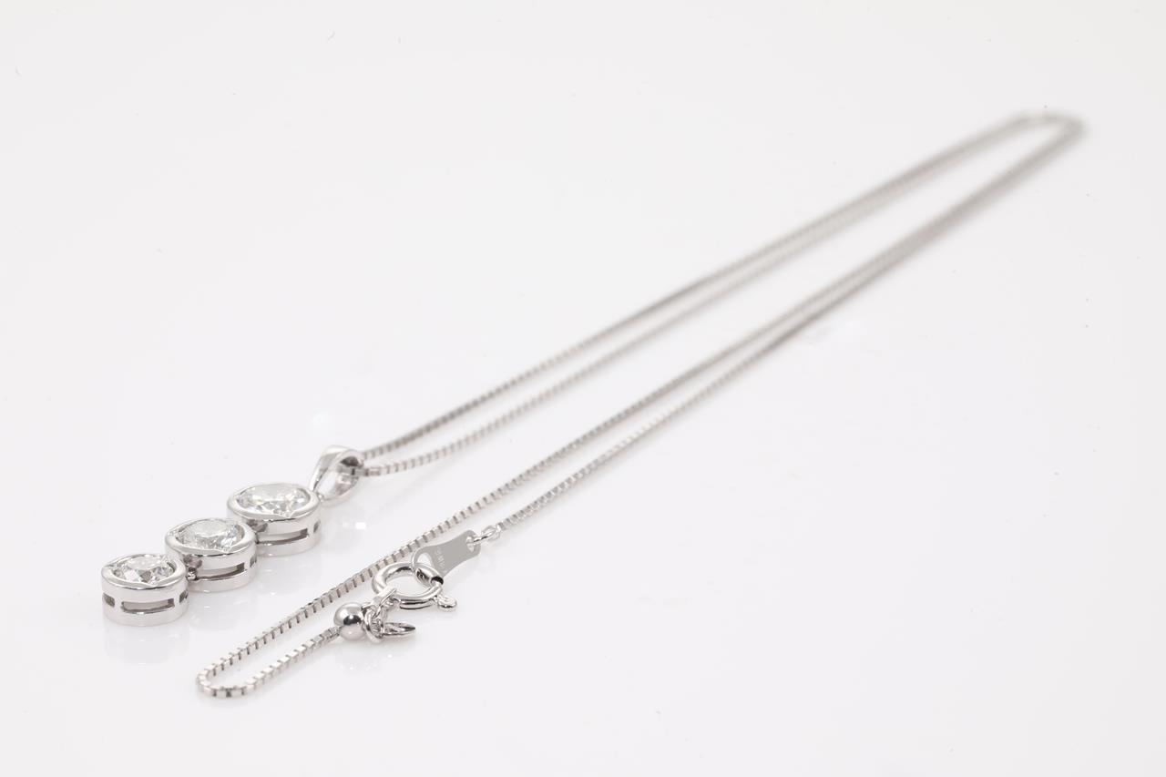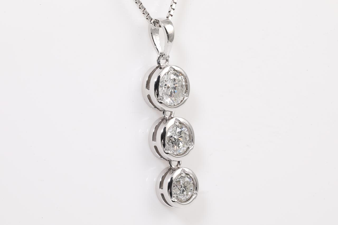 Diamond dress pendant with 3 round Diamonds totalling 1.03cts (Estimated grading: G P1). Platinum with 18ct white gold 44cm chain. Weight: 4.5g. (Pre-owned)