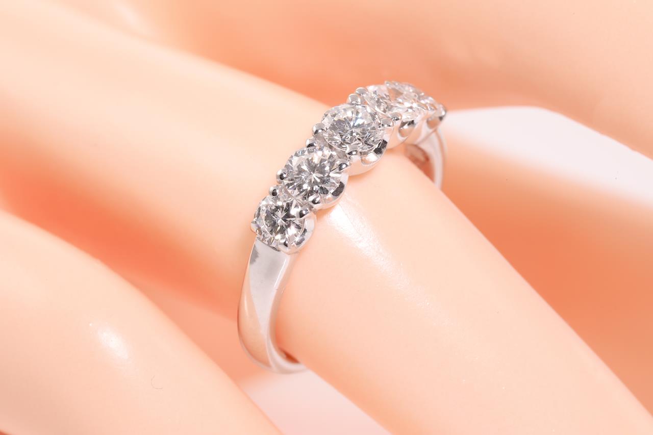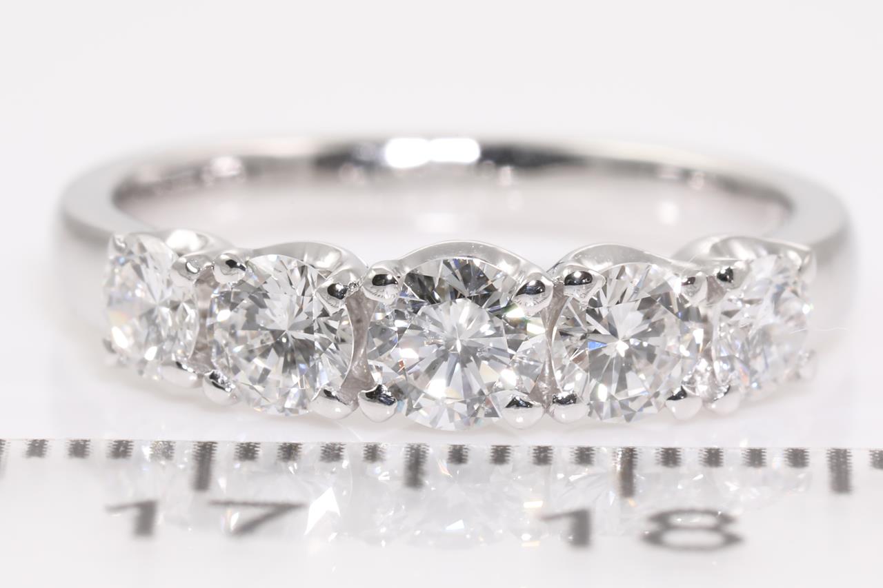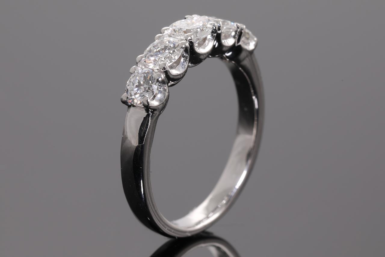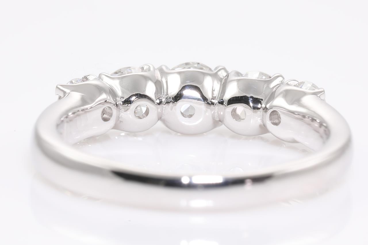 Diamond ring with 5 round Diamonds totalling 1.03cts (Estimated grading: G SI). Platinum. Ring size K1/2. Weight: 5.1g. (Pre-owned)