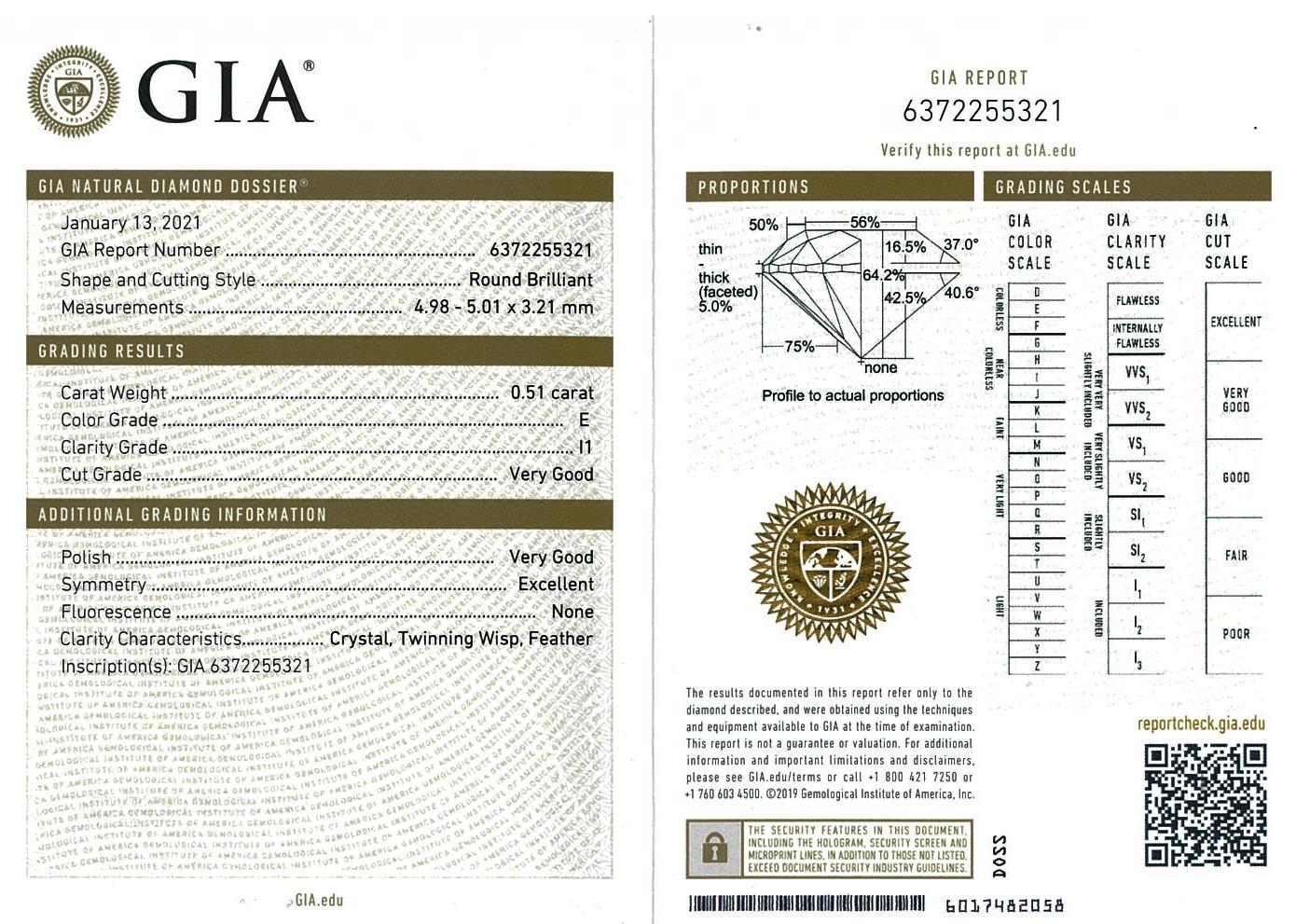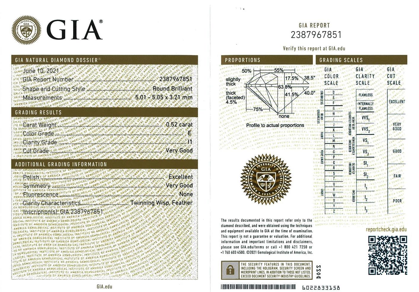 Diamond stud earring with 2 Round Brilliant Cut Diamonds totalling 1.03cts (with GIA report both graded as E P1 #2387967851, 6372255321). 18ct white gold. Weight: 2.4g (New)
