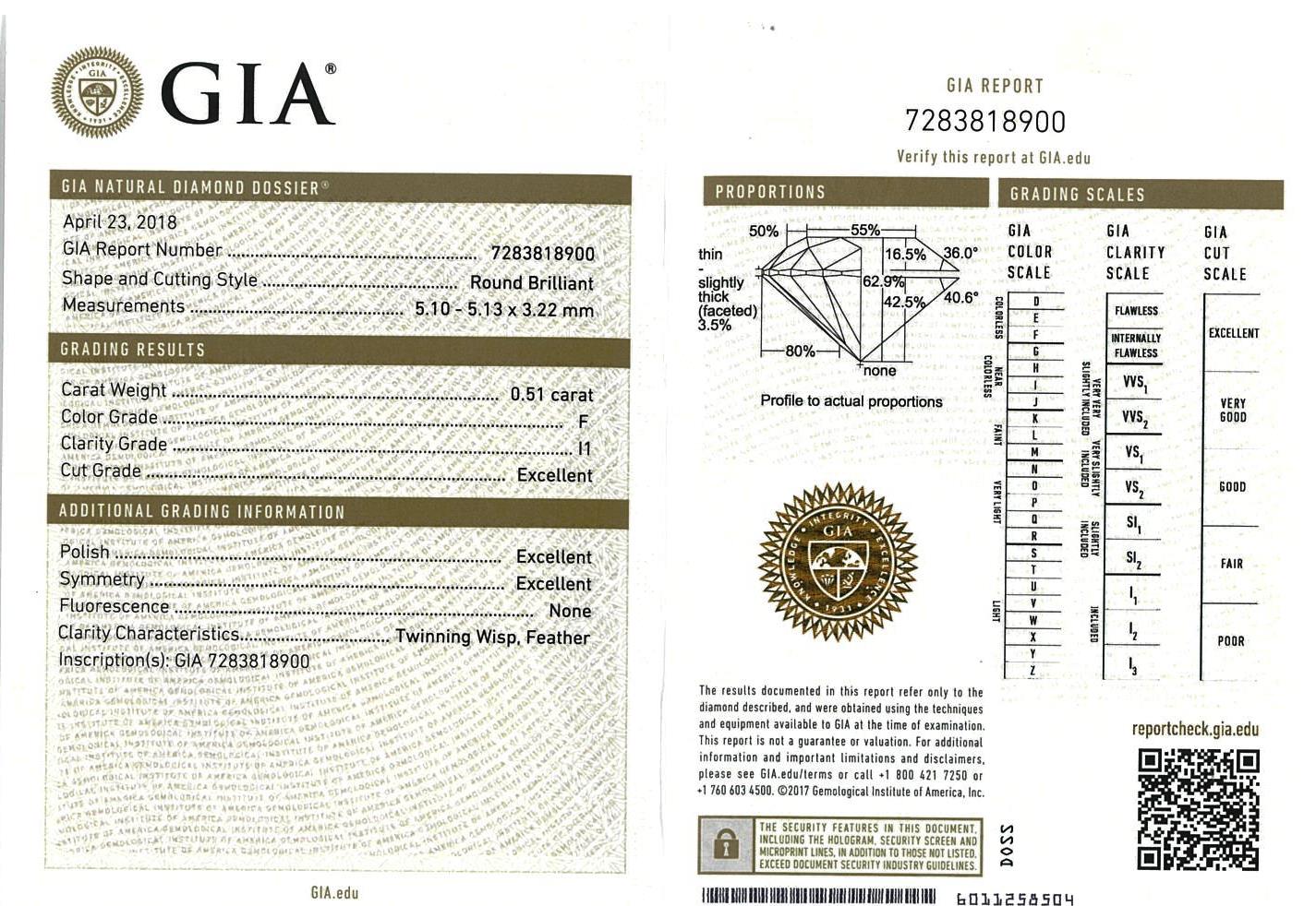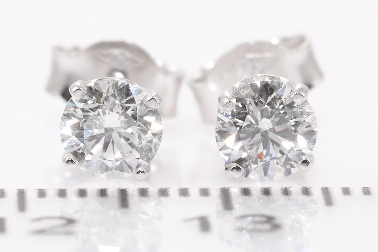 Diamond stud earring with 2 Round Brilliant Cut Diamonds totalling 1.03cts (with GIA report both graded as F P1 #3385812362, 7283818900). 18ct white gold. Weight: 1.8g (New)